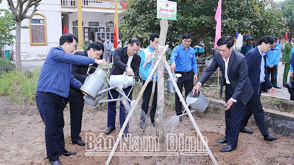 Tại chương trình, các đồng chí lãnh đạo tỉnh, đoàn viên, thanh niên và người dân địa phương tổ chức ra quân trồng cây, triển khai mô hình “Đường cây thanh niên”, trao tặng tủ sách pháp luật và gắn biển công trình “Hàng cây thanh niên” chào mừng kỷ niệm 93 năm Ngày thành lập Đảng Cộng sản Việt Nam (3-2-1930 - 3-2-2023) tại đoạn đường đê Ất Hợi, thôn Bảo Long, xã Mỹ Hà nhằm bảo vệ môi trường, ứng phó biến đổi khí hậu./.