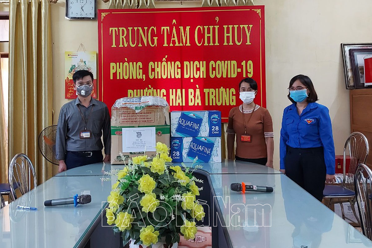 Nhằm động viên, tiếp sức cho cán bộ, chiến sĩ nơi tuyến đầu phòng, chống dịch Covid -19, chiều 27/9, Ban Thường vụ Tỉnh đoàn đã tổ chức 2 đoàn công tác đến thăm, tặng quà cho Ban Chỉ đạo (BCĐ) phòng, chống Covid-19 huyện Thanh Liêm và phường Hai Bà Trưng (thành phố Phủ Lý).