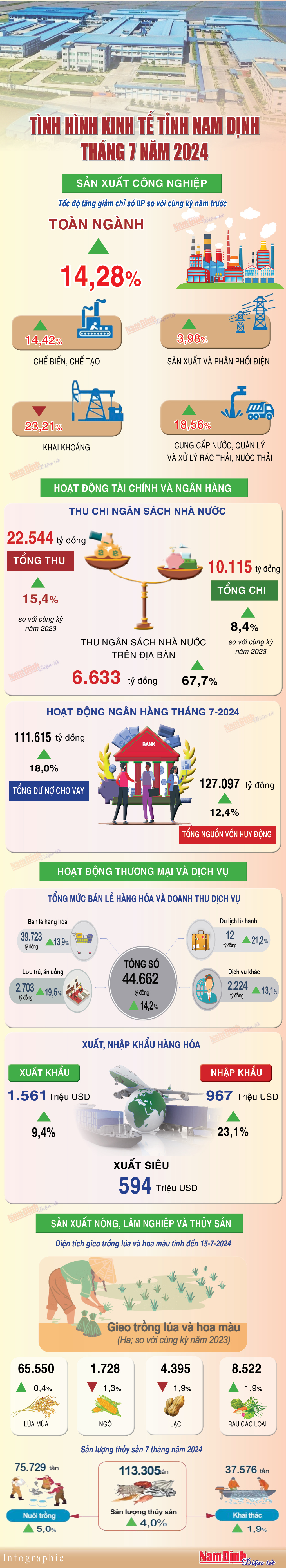 Tình hình phát triển kinh tế tỉnh Nam Định tháng 7 năm 2024