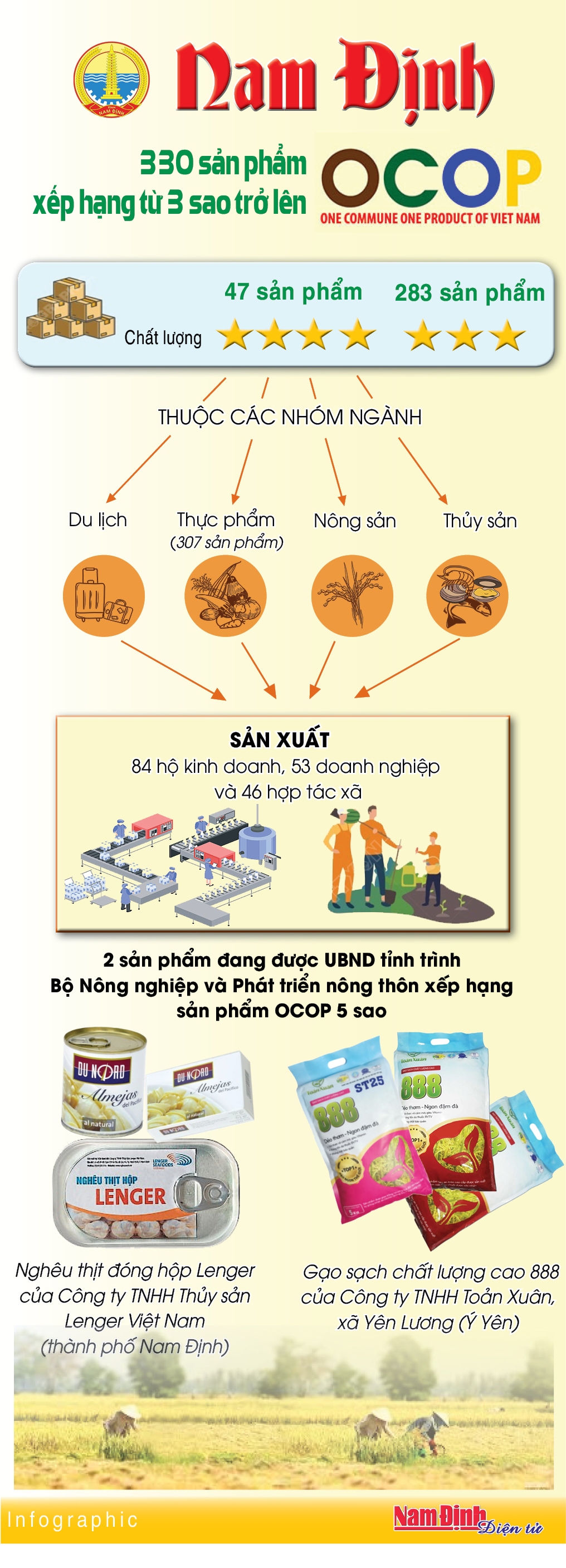 Tỉnh Nam Định có 330 sản phẩm OCOP xếp hạng từ 3 sao trở lên