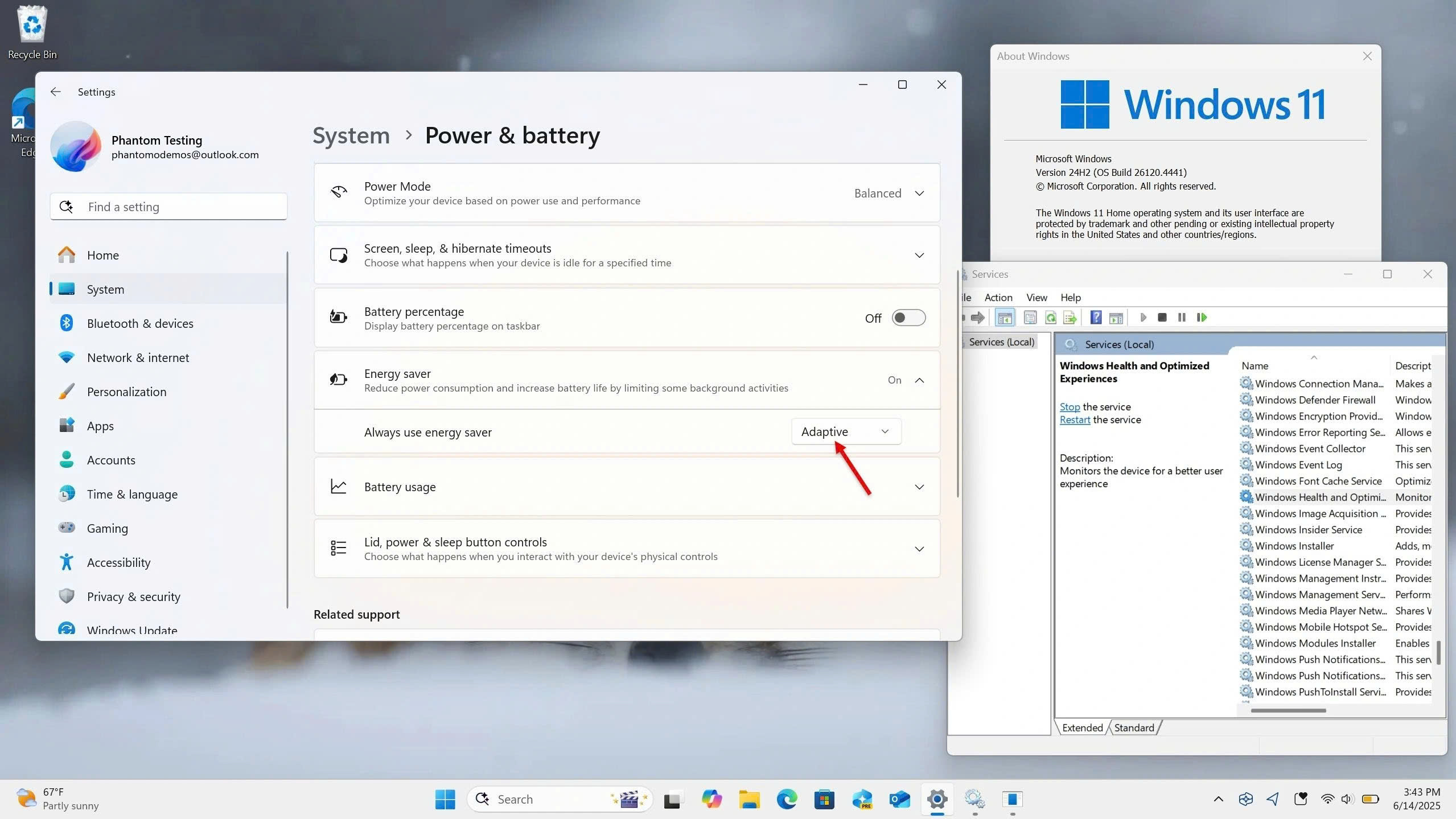 Bằng cách này, Windows 11 có thể tự động tối ưu hóa giữa hiệu năng và thời lượng pin một cách linh hoạt, thay vì người dùng phải bật/tắt thủ công. Tính năng này được cho là có liên quan đến một dịch vụ mới có tên 'Windows Health and Optimized Experience'.