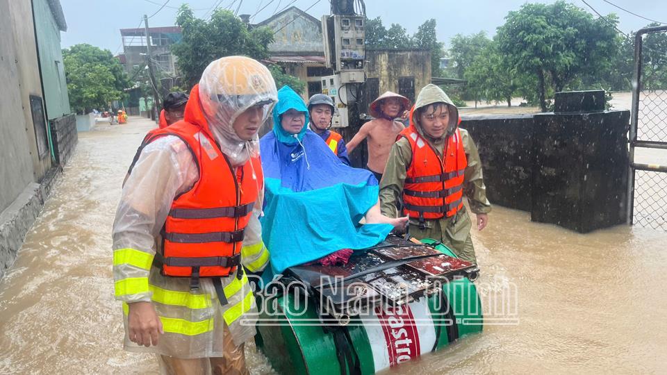 | Trong tình cảnh nước ngập sâu, lực lượng chức năng của tỉnh, thành phố Nam Định đã huy động 100% quân số ứng cứu, hỗ trợ nhân dân di dời tài sản, bảo đảm an toàn tuyệt đối về tính mạng cho người dân. |