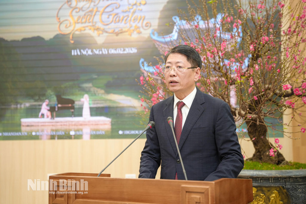 Gửi lời cảm ơn đến Báo Nhân dân, nhóm nhạc Secret Garden và các đơn vị, tổ chức liên quan, đồng chí Trần Song Tùng, Uỷ viên Ban Thường vụ Tỉnh uỷ, Phó Chủ tịch Thường trực UBND tỉnh Ninh Bình khẳng định, việc Ninh Bình được giới thiệu trong MV “Song from a Secret Garden- Secret Garden in Viet Nam” là niềm tự hào, vinh dự của Đảng bộ, Chính quyền và Nhân dân tỉnh Ninh Bình. Đây là cơ hội góp phần đưa hình ảnh đất nước, con người Việt Nam nói chung, của vùng đất Ninh Bình nói riêng đến với bạn bè quốc tế, qua đó góp phần quan trọng trong việc phát triển du lịch trở thành ngành kinh tế mũi nhọn của tỉnh Ninh Bình trong năm 2026 và những năm tiếp theo.