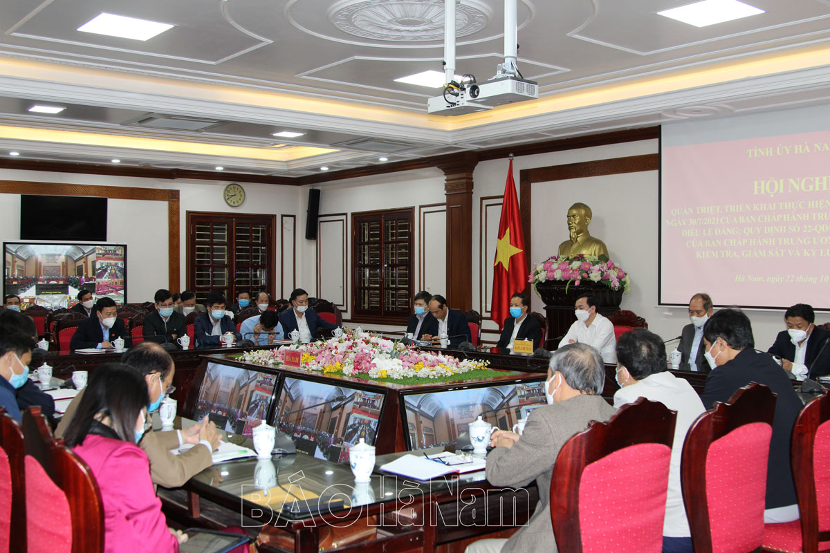 Sáng ngày 22/10, Tỉnh ủy tổ chức hội nghị quán triệt, triển khai thực hiện Quy định số 22-QĐ/TW, ngày 28/7/2021 của Ban Chấp hành (BCH) Trung ương Đảng về công tác kiểm tra, giám sát (KTGS) và kỷ luật của Đảng bằng hình thức trực tuyến từ tỉnh đến các huyện, thị, thành ủy, đảng ủy trực thuộc.