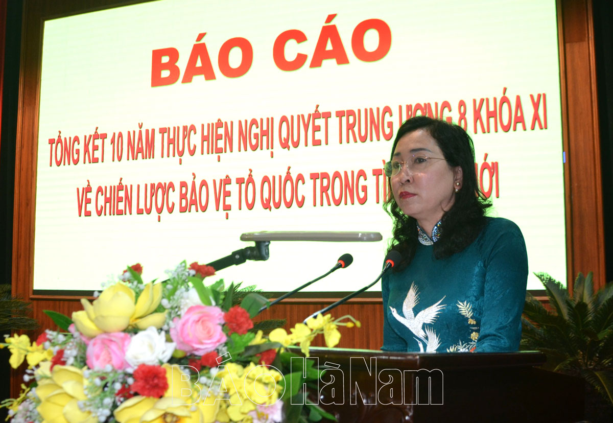 Báo cáo và các tham luận tại hội nghị đã nêu rõ, sau 10 năm triển khai thực hiện Nghị quyết Trung ương 8, khóa XI, Tỉnh ủy, HĐND, UBND tỉnh Hà Nam đã tập trung lãnh đạo, chỉ đạo, điều hành phát huy sức mạnh tổng hợp của cả hệ thống chính trị và toàn dân trong thực hiện nhiệm vụ xây dựng và bảo vệ Tổ quốc. Các cấp ủy đảng, chính quyền, các ban, ngành, đoàn thể trong tỉnh đã tổ chức quán triệt, triển khai thực hiện nghiêm túc, có hiệu quả, tạo sự chuyển biến tích cực từ nhận thức đến hành động, làm cơ sở cho việc đẩy mạnh thực hiện nhiệm vụ bảo vệ Tổ quốc. Các chỉ tiêu kinh tế - xã hội chủ yếu của tỉnh đều đạt và vượt so với kế hoạch đề ra; công tác xây dựng Đảng, xây dựng hệ thống chính trị, hoạt động của MTTQ và các đoàn thể có nhiều đổi mới và đạt được kết quả quan trọng, chính trị ổn định, trật tự kỷ cương xã hội được bảo đảm; đời sống nhân dân được nâng lên. Nền quốc phòng toàn dân, thế trận quốc phòng toàn dân gắn với thế trận an ninh nhân dân được củng cố, tăng cường; khu vực phòng thủ tỉnh, huyện, thị xã, thành phố được xây dựng ngày càng vững chắc. Chất lượng tổng hợp, khả năng sẵn sàng chiến đấu của lực lượng vũ trang địa phương được nâng lên rõ rệt, đáp ứng yêu cầu bảo vệ Tổ quốc trong tình hình mới.