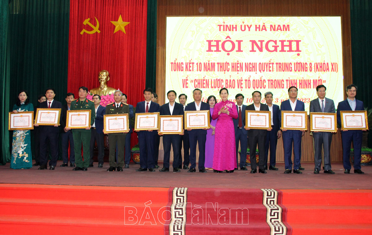 Nhân dịp này, Ban Thường vụ Tỉnh ủy Hà Nam đã trao tặng Bằng khen cho 20 tập thể, 25 cá nhân đã có thành tích xuất sắc trong thực hiện Nghị quyết Trung ương 8 (khóa XI) về “Chiến lược bảo vệ Tổ quốc trong tình hình mới”.