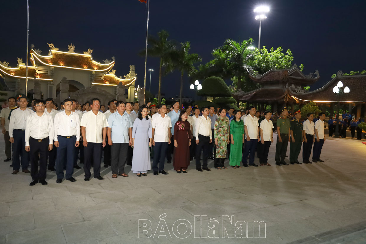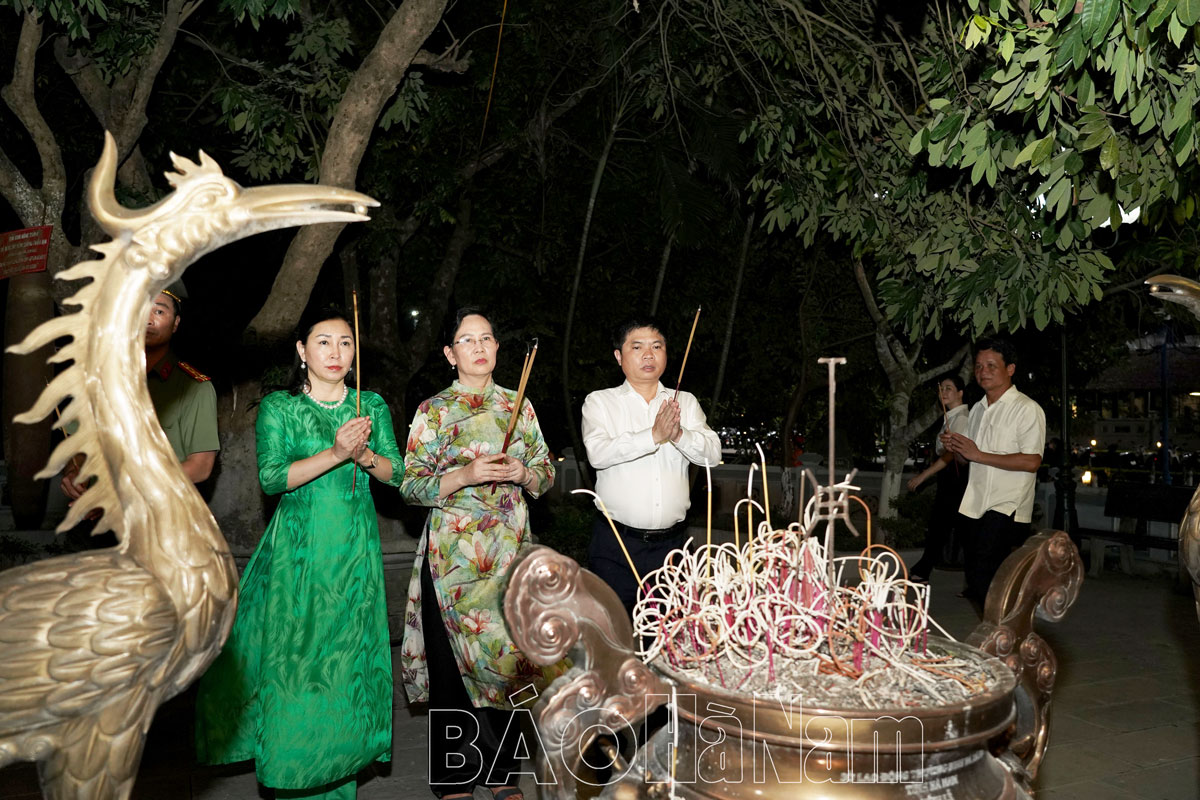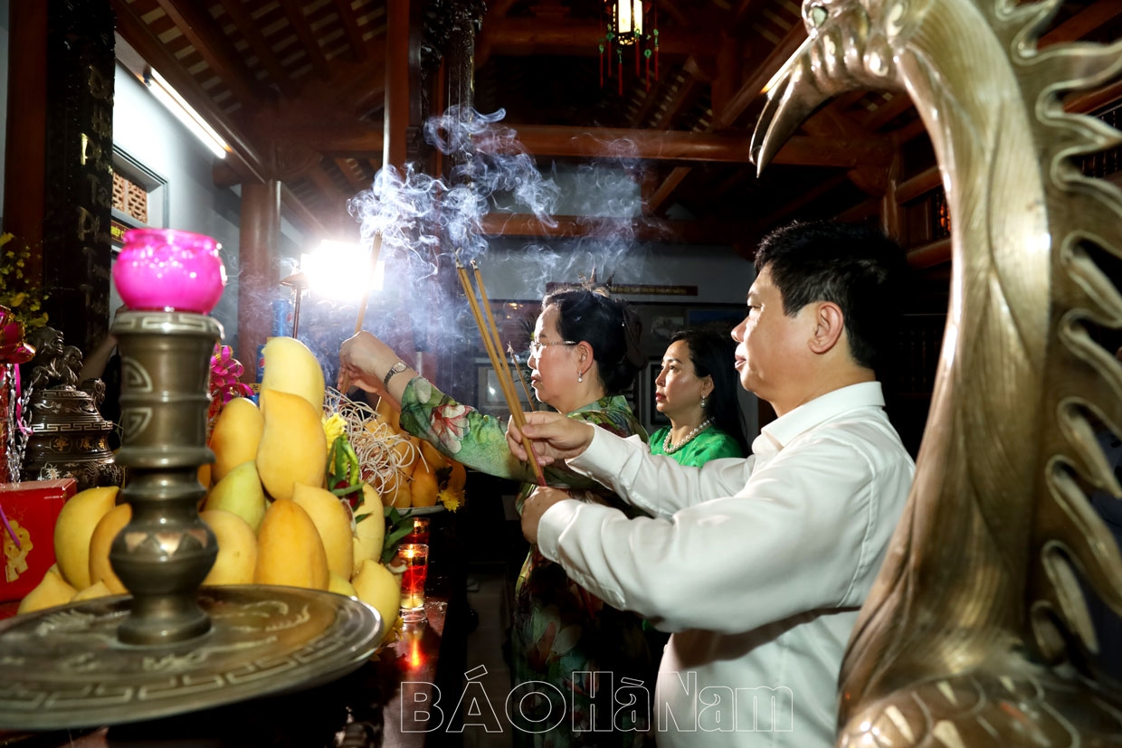 Sau nghi thức đặt vòng hoa, các đồng chí lãnh đạo Tỉnh ủy, HĐND, UBND tỉnh, Ủy ban MTTQ tỉnh; lãnh đạo thành phố Phủ Lý và các sở, ban, ngành của tỉnh đã tới dâng hương tại Đền thờ các anh hùng liệt sĩ tỉnh; Đền thờ 10 nữ dân quân Lam Hạ; Nhà tưởng niệm đồng chí Lương Khánh Thiện.