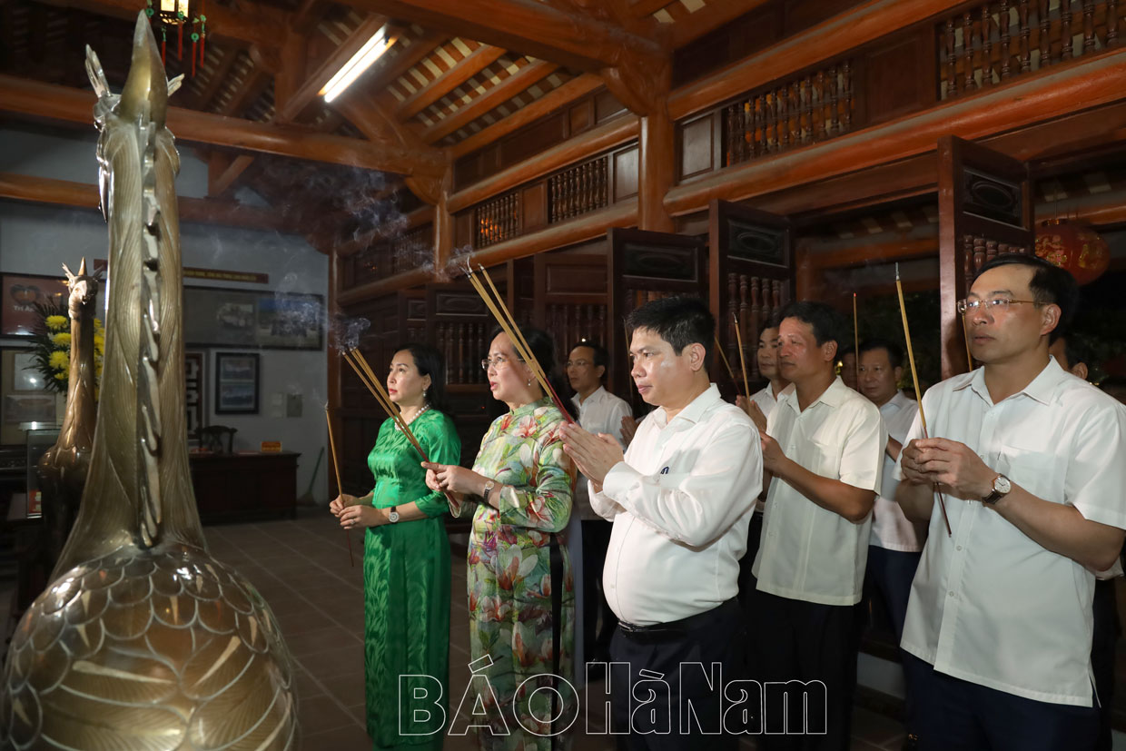 Lãnh đạo tỉnh dâng hương tưởng nhớ công lao và sự hy sinh to lớn của Chủ tịch Hồ Chí Minh vĩ đại và các Anh hùng liệt sĩ.Các đồng chí lãnh đạo tỉnh thành kính dâng hương tại Nhà tưởng niệm đồng chí Lương Khánh Thiện.Các đồng chí lãnh đạo tỉnh dâng hương tại Đền thờ 10 nữ dân quân Lam Hạ.