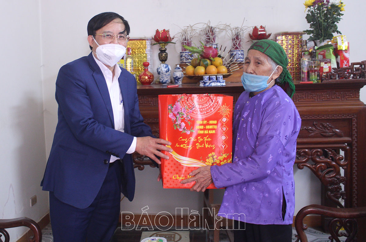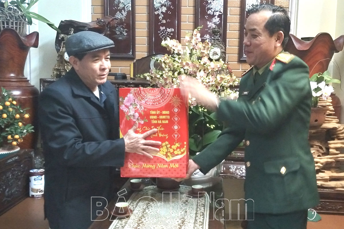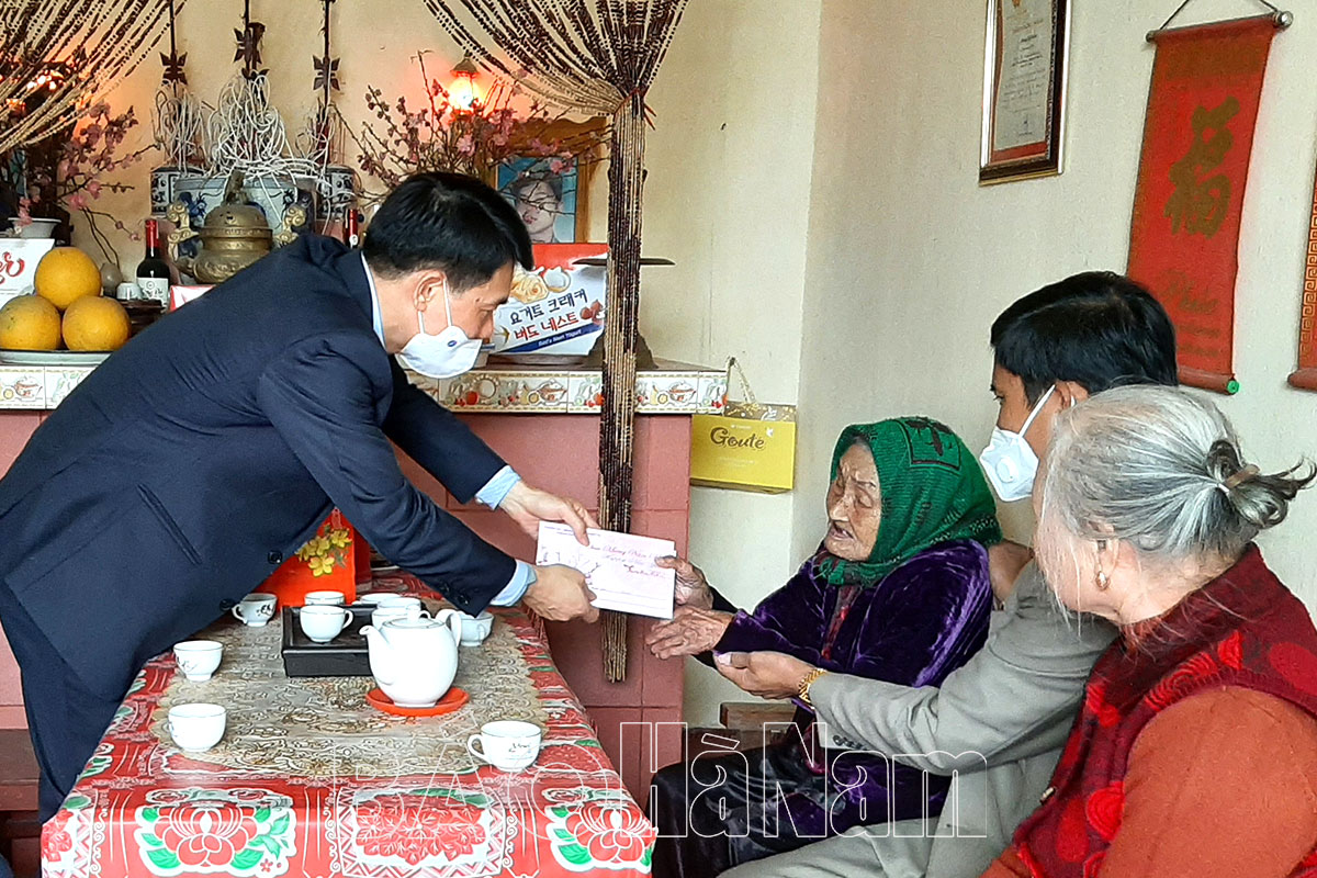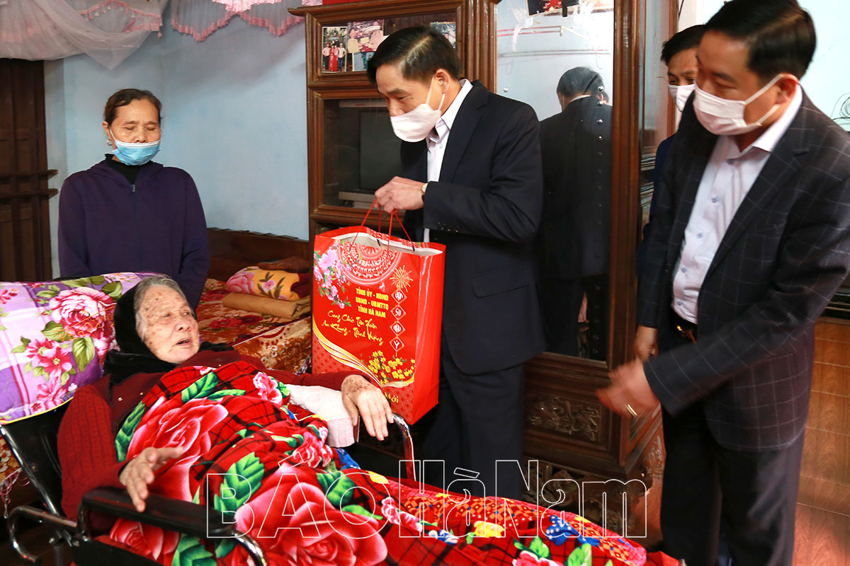 Đoàn đã tới tới thăm, chúc Tết gia đình các đồng chí: Phạm Văn Tam, nguyên Ủy viên BTV Tỉnh ủy, nguyên Chỉ huy trưởng Bộ Chỉ huy Quân sự tỉnh; Phạm Tư Lành, nguyên Ủy viên BTV Tỉnh ủy, nguyên Trưởng ban Tổ chức Tỉnh ủy; Mẹ Việt Nam anh hùng Vũ Thị Đam (thôn Thận Y, xã Yên Nam); gia đình Liệt sĩ Hoàng Văn Dong (thôn Hoàn Dương, xã Mộc Bắc); gia đình bệnh binh Lương Công Sỹ (thôn Lảnh Trì, xã Mộc Nam); gia đình nạn nhân chất độc da cam Lê Hồng Trác (thôn Vân Kênh, xã Châu Giang); cụ Trương Thị Điểm (người già không nơi nương tựa, thôn Quan Phố, xã Chuyên Ngoại); cụ Nguyễn Văn Đọi (người cao tuổi tròn 100 tuổi, tổ dân phố số 3, thị trấn Hoà Mạc).