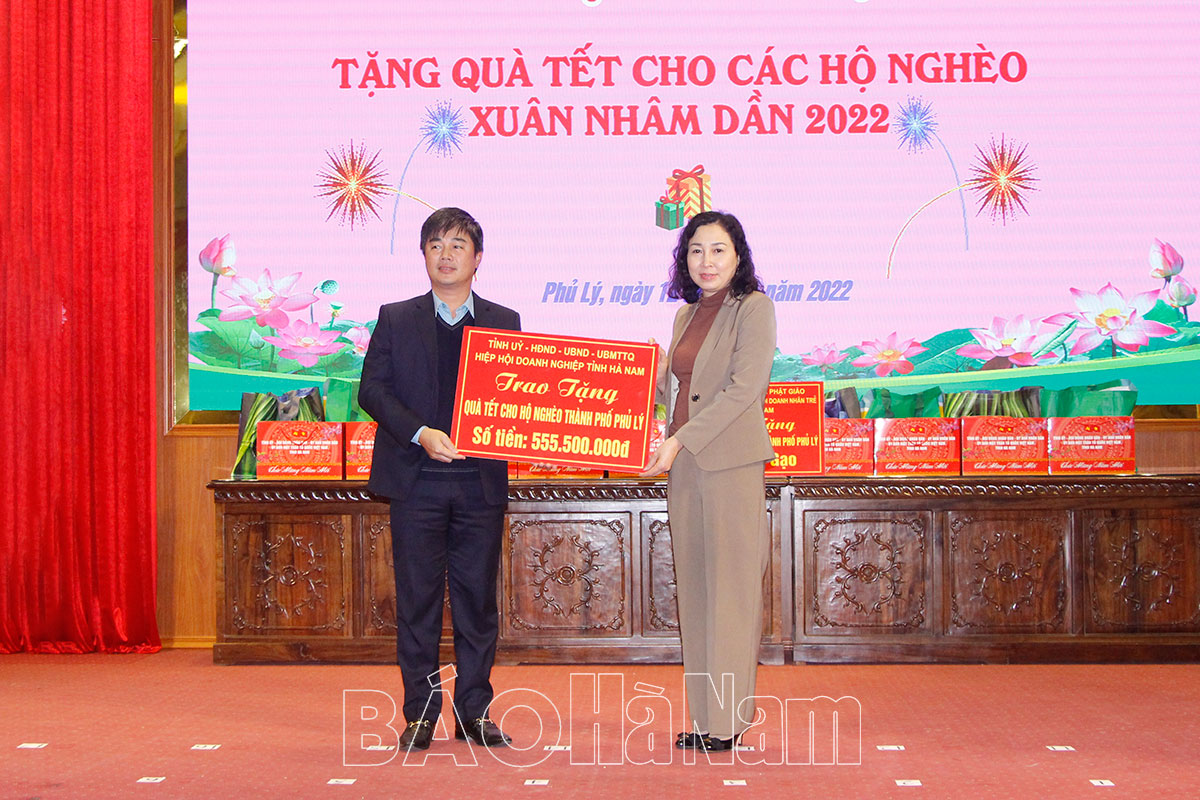 Nhân dịp Tết Nhâm Dần, thay mặt lãnh đạo tỉnh, đồng chí Phó Bí thư Thường trực Tỉnh uỷ đã trao tặng số tiền gần 560 triệu đồng hỗ trợ các hộ nghèo của thành phố; đại diện Ban Trị sự Giáo hội Phật giáo tỉnh, Hiệp hội Doanh nghiệp và Hội Doanh nhân trẻ tỉnh Hà Nam đã trao tặng các hộ nghèo của thành phố gần 6 tấn gạo. Cũng tại hội nghị, 10 hộ gia đình đại diện cho các hộ nghèo của thành phố đã được trao quà Tết cùng 500.000 đồng tiền mặt.