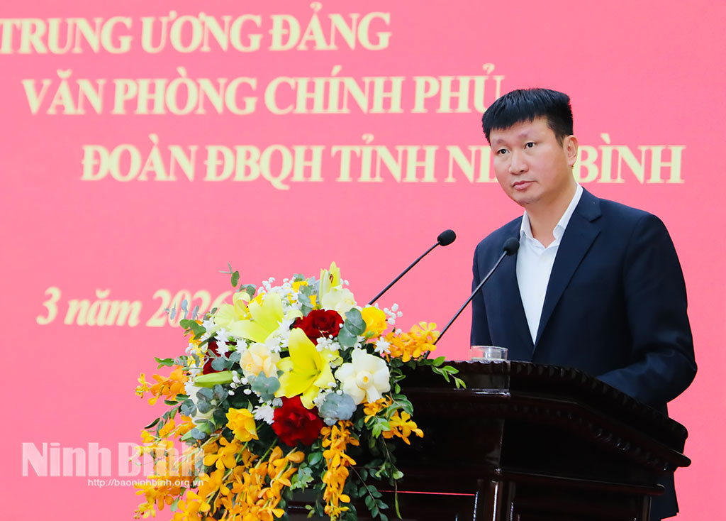 Phát biểu tại Hội nghị, đồng chí Đặng Xuân Phong, Ủy viên Trung ương Đảng, Phó Chủ nhiệm Thường trực Văn phòng Chính phủ trân trọng cảm ơn sự quan tâm, tình cảm của Thường trực Tỉnh ủy, Ban Thường vụ Tỉnh ủy, Ban Chấp hành Đảng bộ tỉnh cùng các đồng chí lãnh đạo, cán bộ, đảng viên trong tỉnh đã dành cho đồng chí trong suốt quá trình công tác tại Ninh Bình.