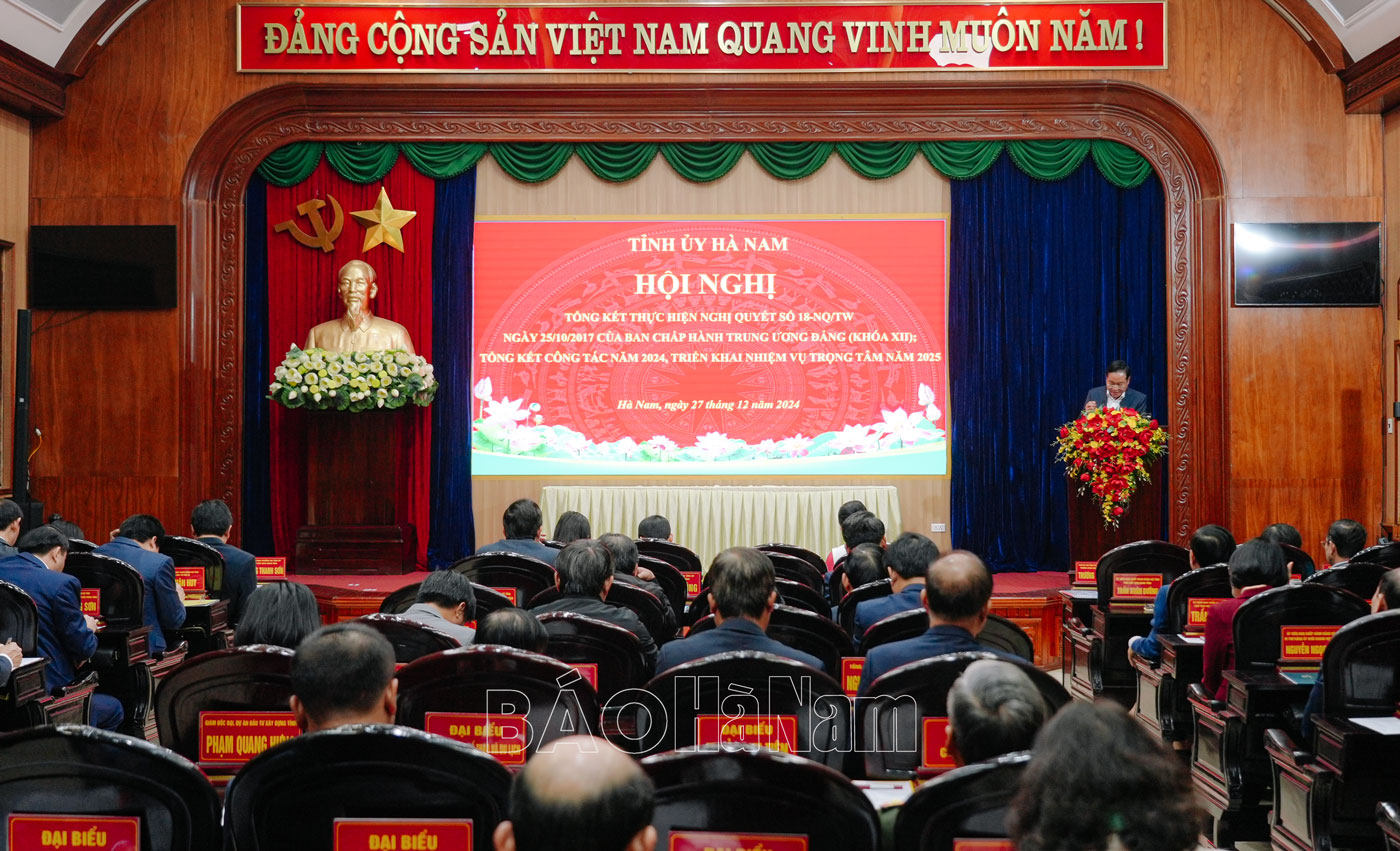 Báo cáo tại hội nghị do đồng chí Phó Bí thư Thường trực Tỉnh ủy Đinh Thị Lụa trình bày nêu rõ, sau 7 năm thực hiện Nghị quyết số 18, tính chung cả 2 giai đoạn ( giai đoạn 1 từ khi Trung ương ban hành nghị quyết đến tháng 10/2024 và giai đoạn 2: dự kiến sau khi thực hiện Đề án 09-ĐA/TU ngày 13/12/2024 của BCH Đảng bộ tỉnh) về tinh gọn bộ máy, trên địa bàn tỉnh Hà Nam giảm 4 cơ quan trực thuộc Tỉnh ủy đạt 36,4%; 5 sở đạt 26,3%; 83 phòng, ban và tương đương cấp tỉnh, cấp huyện đạt 21,7% và 3 ban chỉ đạo; 40 đơn vị sự nghiệp công lập cấp tỉnh, cấp huyện đạt 8,2%; 18 đơn vị hành chính cấp xã đạt 15,5%; 553 thôn, tổ dân phố đạt 44,6%. Về tinh giản biên chế, công chức đạt tỷ lệ 14,4% (215/1.503), viên chức tỷ lệ 5,7% (881/15.327); cán bộ, công chức cấp xã đạt 11,3% và người hoạt động không chuyên trách ở cấp xã, thôn, tổ dân phố đạt 49,3%. Qua việc thực hiện nghị quyết tổ chức bộ máy các cơ quan, đơn vị từ tỉnh đến cơ sở được củng cố, kiện toàn theo hướng tinh gọn, bảo đảm thực hiện theo chức năng, nhiệm vụ. Một số địa phương, cơ quan, đơn vị đã thí điểm mô hình mới về tổ chức, kiêm nhiệm chức danh lãnh đạo, quản lý, cắt giảm tổ chức trung gian, giải thể các cơ quan, tổ chức hoạt động không hiệu quả; sắp xếp, sáp nhập, hợp nhất các đầu mối, đơn vị trực thuộc, phòng, ban… đem lại hiệu quả thiết thực, tạo sự đồng thuận trong cán bộ, đảng viên và nhân dân. Việc sắp xếp, bố trí, cơ cấu lại đội ngũ cán bộ, công chức, viên chức gắn với việc thực hiện tinh giản biên chế đã tạo động lực phát huy năng lực, sở trường công tác, nâng cao chất lượng đội ngũ cán bộ, công chức, viên chức, đáp ứng ngày càng tốt hơn yêu cầu thực hiện các nhiệm vụ chính trị tại địa phương.