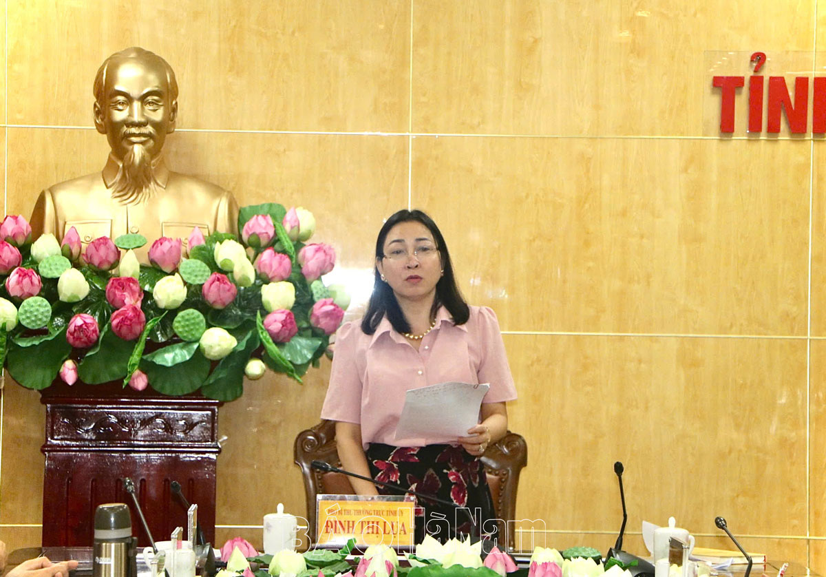 Đồng chí Phó Bí thư Thường trực Tỉnh ủy Đinh Thị Lụa phát biểu kết luận hội nghị.
