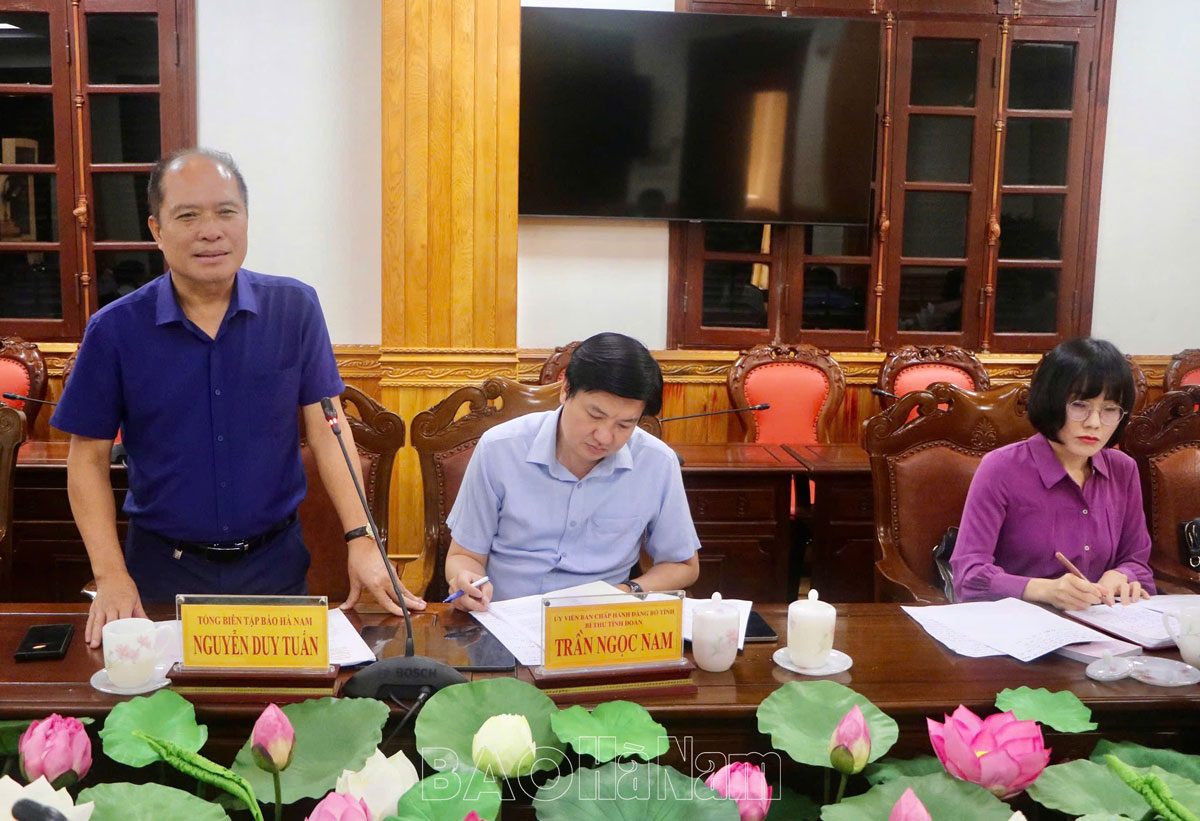 Đồng chí Nguyễn Duy Tuấn,Tổng Biên tập Báo Hà Nam phát biểu thảo luận.