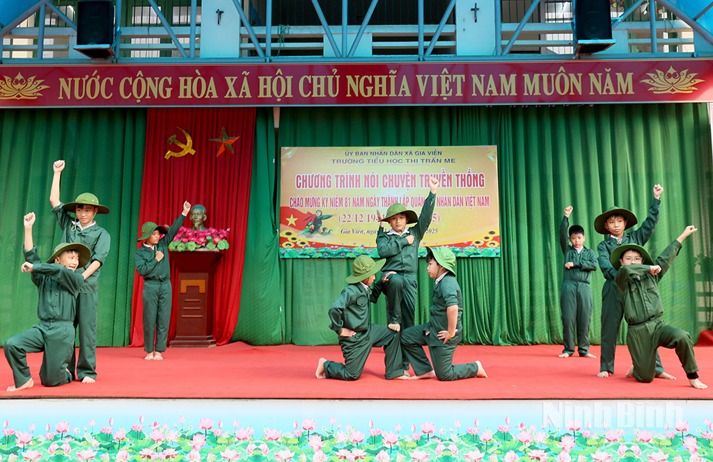 * Sáng 22/12, Trường Tiểu học thị trấn Me (xã Gia Viễn) tổ chức Chương trình nói chuyện truyền thống chào mừng kỷ niệm 81 năm ngày thành lập Quân đội nhân dân Việt Nam (22/12/1944 - 22/12/2025).