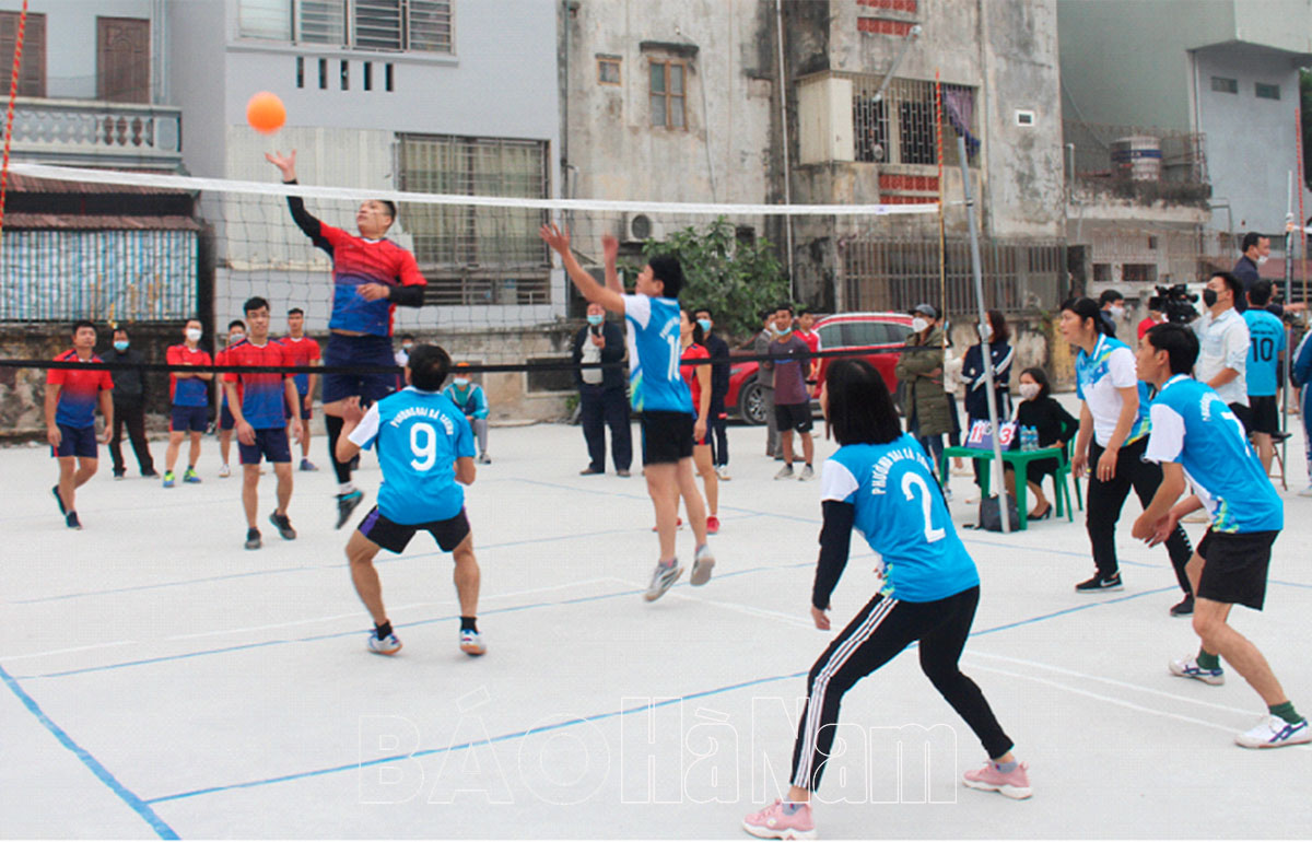 Một trận thi đấu tại Giải Bóng chuyền hơi Đại hội TDTT TP Phủ Lý.