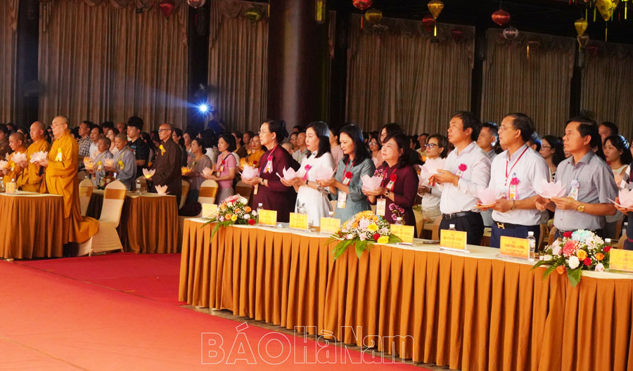 Dự đại lễ có các đồng chí: Lê Thị Thủy, Ủy viên Trung ương Đảng, Bí thư Tỉnh ủy, Chủ tịch HĐND tỉnh; Đinh Thị Lụa, Phó Bí thư Thường trực Tỉnh ủy; Lê Thị Thanh Hà, Ủy viên Ban Thường vụ Tỉnh ủy, Trưởng Ban Tuyên giáo Tỉnh ủy; Trần Thị Ngân, Ủy viên Ban Thường vụ Tỉnh ủy, Chủ tịch Ủy ban Mặt trận Tổ quốc tỉnh; các đồng chí Phó Chủ tịch UBND tỉnh: Nguyễn Đức Vượng, Trần Xuân Dưỡng; Hòa thượng Thích Thanh Nhiễu, Phó Chủ tịch Thường trực Hội đồng Trị sự Giáo hội Phật giáo Việt Nam, Trụ trì Chùa Bái Đính và chùa Tam Chúc cùng đông đảo tăng ni, phật tử và du khách thập phương đã về dự.