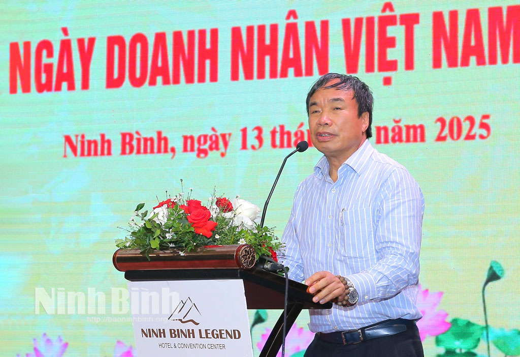Đồng chí tin tưởng rằng, buổi gặp mặt kỷ niệm Ngày Doanh nhân Việt Nam hôm nay thể hiện sự thành công, quyết tâm, nỗ lực và niềm tin của cộng đồng doanh nghiệp vào tỉnh Ninh Bình trong giai đoạn tới. Điều này cũng tạo nên sức mạnh để Ninh Bình thực hiện những chiến lược mang tầm đột phá - một khát vọng mới, dựa trên sự hợp nhất của ba tỉnh Ninh Bình, Hà Nam, Nam Định. Chương trình cũng thể hiện sự quyết tâm của tỉnh, sự đồng lòng của doanh nghiệp để thực hiện Nghị quyết Đại hội đại biểu Đảng bộ tỉnh Ninh Bình lần thứ I, với khát vọng lớn lao đưa Ninh Bình trở thành thành phố trực thuộc Trung ương vào năm 2030.