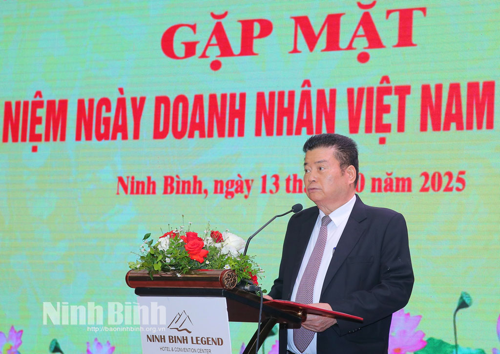 Trân trọng ghi nhận, biểu dương và cảm ơn sâu sắc các doanh nghiệp, doanh nhân trong thời gian qua - những người đã có những cống hiến, đóng góp quan trọng, xây dựng Ninh Bình trở thành điểm sáng của vùng đồng bằng sông Hồng và tiến tới là của cả nước, đồng chí nhấn mạnh: chương trình gặp mặt kỷ niệm Ngày Doanh nhân Việt Nam hôm nay không chỉ là để biểu dương những đóng góp quan trọng của cộng đồng doanh nghiệp, doanh nhân đối với sự phát triển của tỉnh, mà còn quan trọng hơn là thể hiện tinh thần đoàn kết, thống nhất của tỉnh mới để cùng tăng tốc, bứt phá, phát triển trong không gian mới, bộ máy mới, con người mới, yêu cầu mới của kỷ nguyên vươn mình của dân tộc.