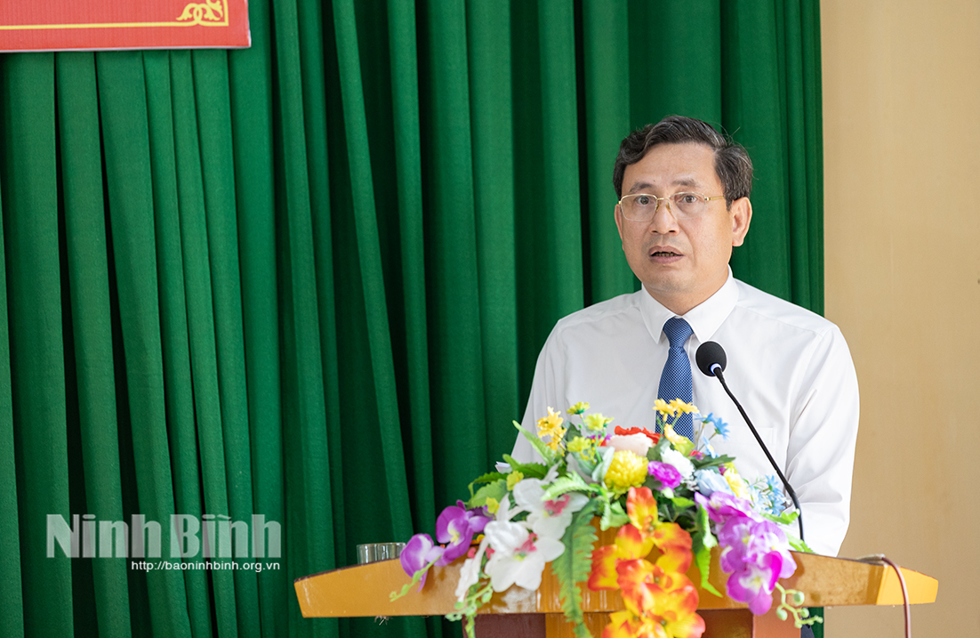 Đồng chí Vũ Thế Hưng, Bí thư Đảng ủy, Chủ tịch HĐND xã Hải Anh phát biểu tại buổi lễ. Ảnh Viết Dư