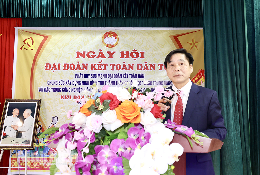Đồng chí nhấn mạnh: Thời gian tới, tỉnh Ninh Bình xác định mục tiêu phát triển nhanh và bền vững, phấn đấu đến năm 2030 trở thành thành phố trực thuộc Trung ương với đặc trưng là đô thị di sản. Để thực hiện mục tiêu đó cần sự đồng thuận xã hội, sự hưởng ứng của toàn thể nhân dân, trong đó có vai trò quan trọng của mỗi khu dân cư.