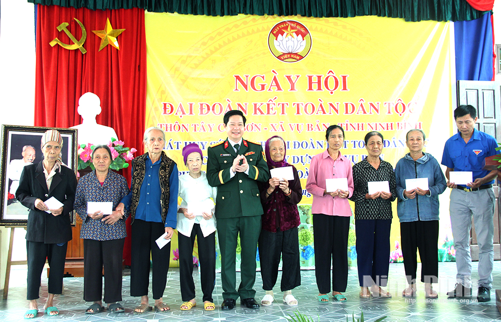 * Đồng chí Đại tá Trịnh Hồng Phong, Ủy viên Ban Thường vụ Tỉnh ủy, Chỉ huy trưởng Bộ CHQS tỉnh; lãnh đạo Hội Cựu chiến binh tỉnh, Sở Nông nghiệp và Môi trường đã dự và chúc mừng Ngày hội Đại đoàn kết toàn dân tộc tại thôn Tây Côi Sơn, xã Vụ Bản.