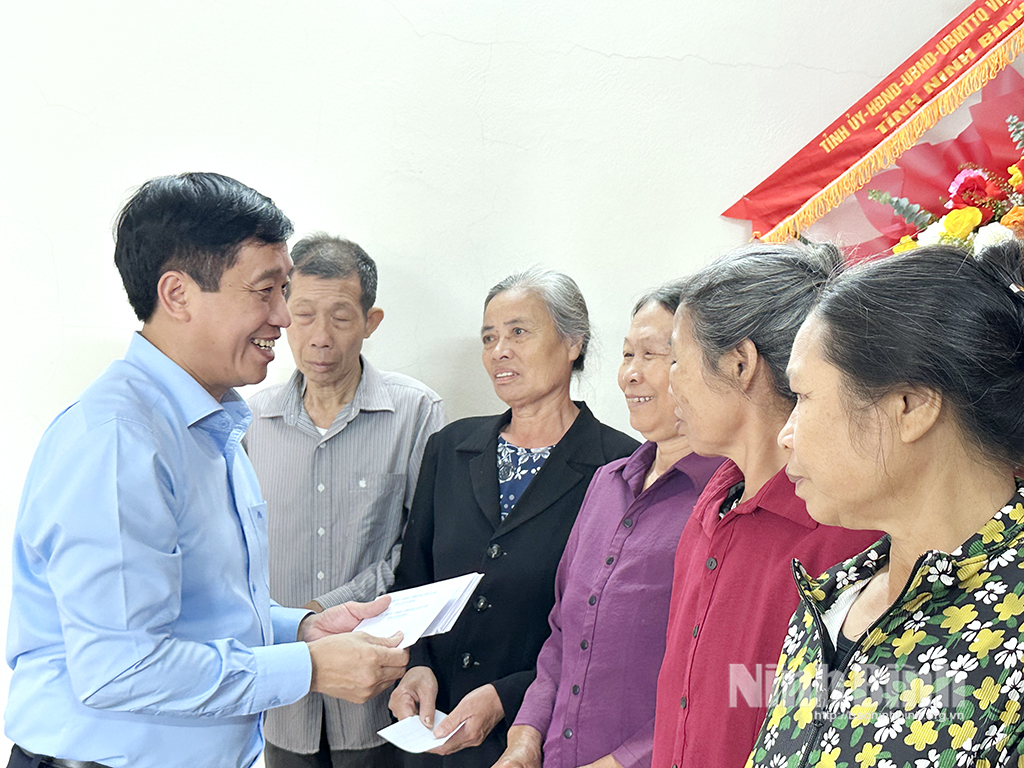 Nhân dịp này, Đại tá Nguyễn Minh Hải, Phó Giám đốc Công an tỉnh đã tặng hoa và quà chúc mừng cán bộ, nhân dân xóm 4, xã Kim Đông; trao quà cho các hộ gia đình có hoàn cảnh khó khăn.