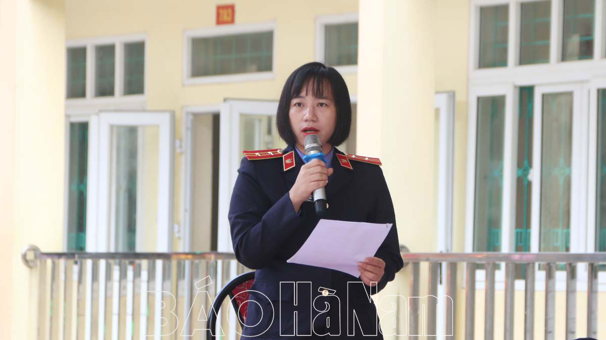 Đại diện Viện Kiểm sát nhân dân thành phố Phủ Lý đọc bản cáo trạng tại Phiên tòa giả định.