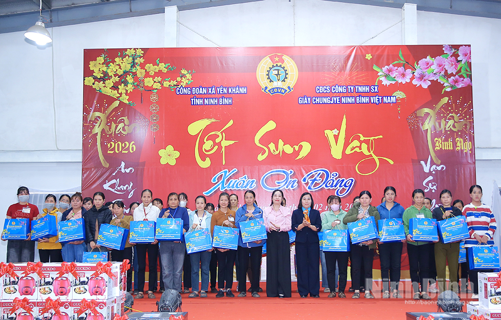 Được biết, dịp Tết Nguyên đán Bính Ngọ 2026, Công ty TNHH sản xuất giày Chung Jye Ninh Bình đã dành hơn 2,2 tỷ đồng để chăm lo Tết cho gần 5.300 công nhân, người lao động thông qua các hình thức hỗ trợ thiết thực, kịp thời.