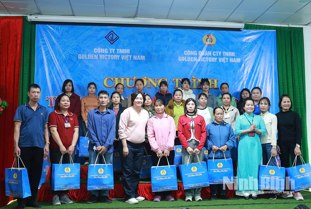 Phát biểu tại chương trình, đại diện lãnh đạo LĐLĐ tỉnh đã ghi nhận, đánh giá cao những nỗ lực của tập thể lãnh đạo và người lao động Công ty TNHH Golden Victory Việt Nam trong việc duy trì ổn định sản xuất, bảo đảm việc làm, thu nhập cho người lao động; quan tâm, chăm lo ngày càng tốt hơn đời sống vật chất, tinh thần cho đoàn viên công đoàn. Đồng thời chúc toàn thể người lao động của Công ty đón Tết Nguyên đán Bính Ngọ 2026 vui tươi, đầm ấm.