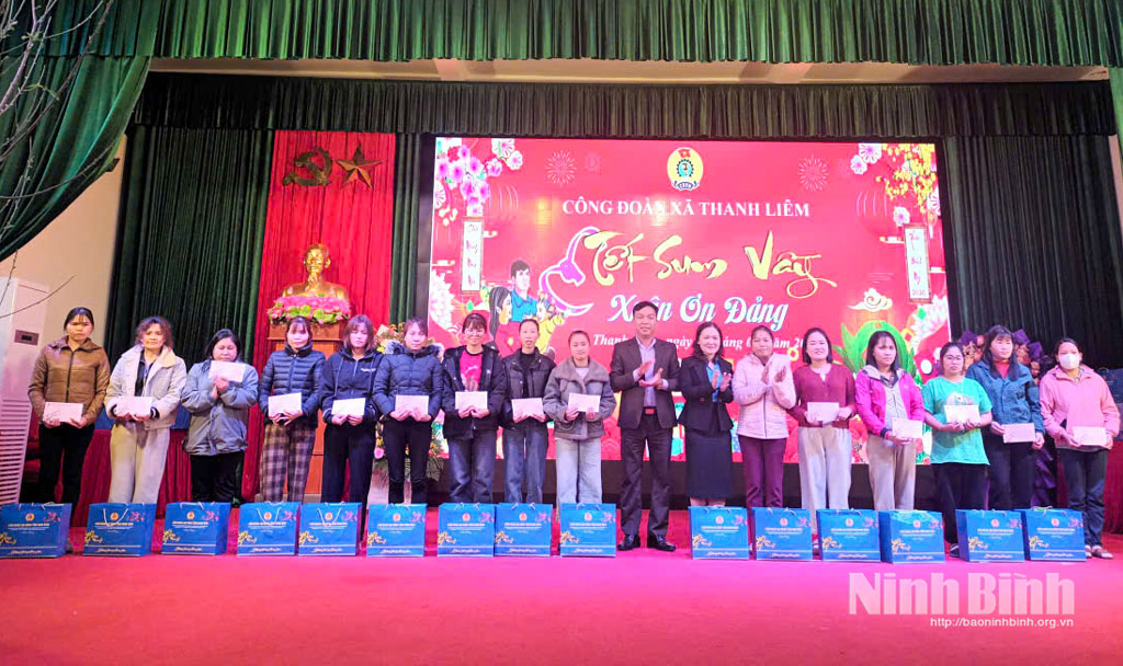 Tại Chương trình “Tết sum vầy - Xuân ơn Đảng”, Công đoàn xã Thanh Liêm đã tổ chức trao 180 suất quà Tết của Liên đoàn Lao động tỉnh cho đoàn viên, người lao động có hoàn cảnh khó khăn. Số quà còn lại, Công đoàn xã sẽ tổ chức trao trực tiếp cho người lao động tại các doanh nghiệp.