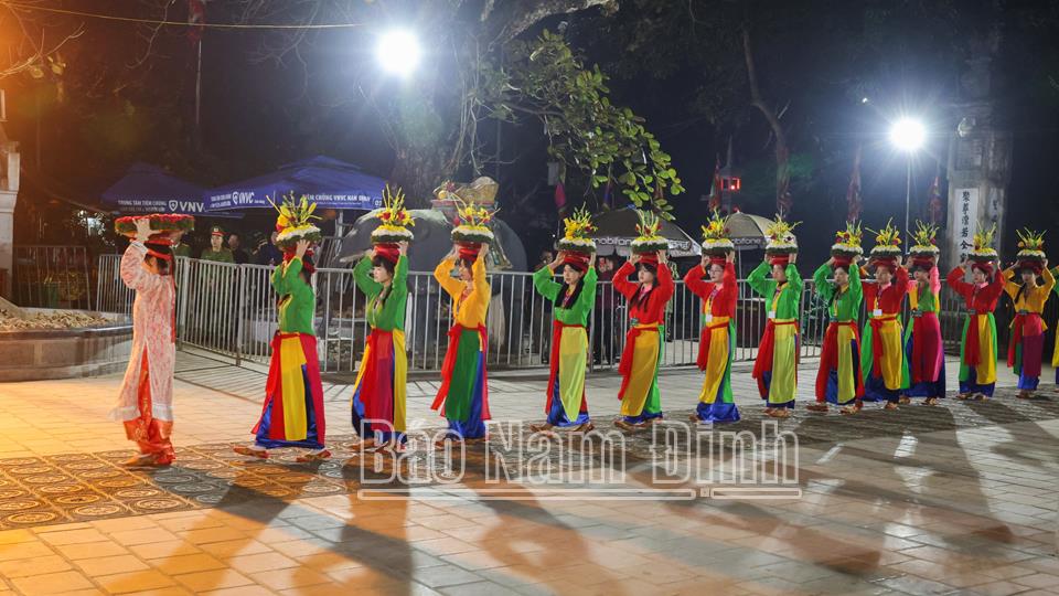 | Nghi thức dâng lễ vật tại Đền Thiên Trường. |