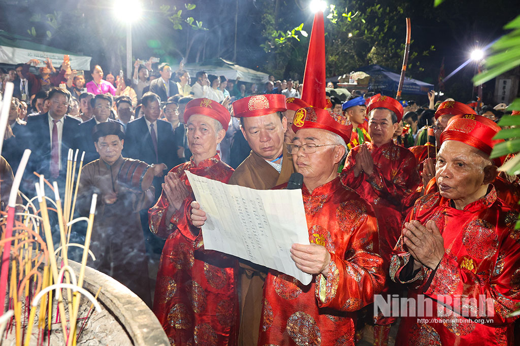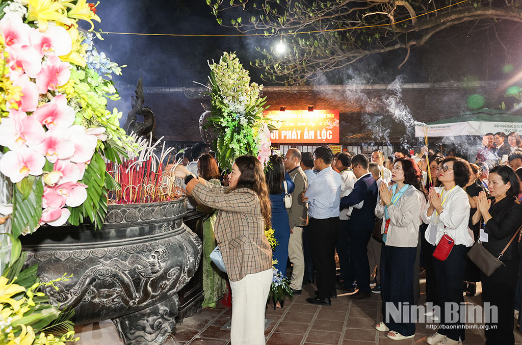 Đúng 22h, trong không gian linh thiêng của Lễ Khai ấn, trước ban thờ Trung Thiên đền Thiên Trường, các đại biểu đã thành kính dâng hương tưởng nhớ tổ tiên, các vị Vua nhà Trần, tri ân công lao to lớn của Vương Triều Trần và Đức Thánh Trần - Quốc công Tiết chế Hưng Đạo Đại vương Trần Quốc Tuấn; đồng thời động viên cán bộ, nhân dân tiếp tục phát huy truyền thống, thi đua học tập, lao động, góp phần xây dựng quê hương, đất nước.