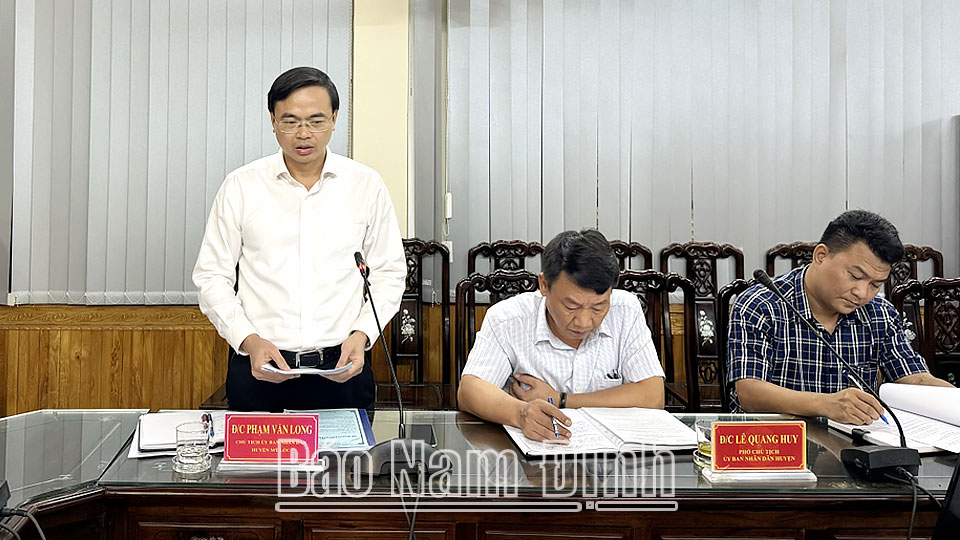 | Đồng chí Chủ tịch UBND huyện Mỹ Lộc Phạm Văn Long phát biểu tại buổi làm việc. |