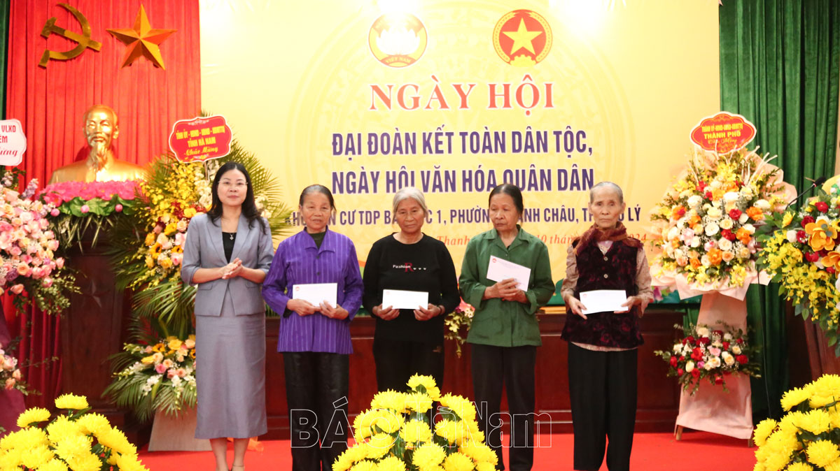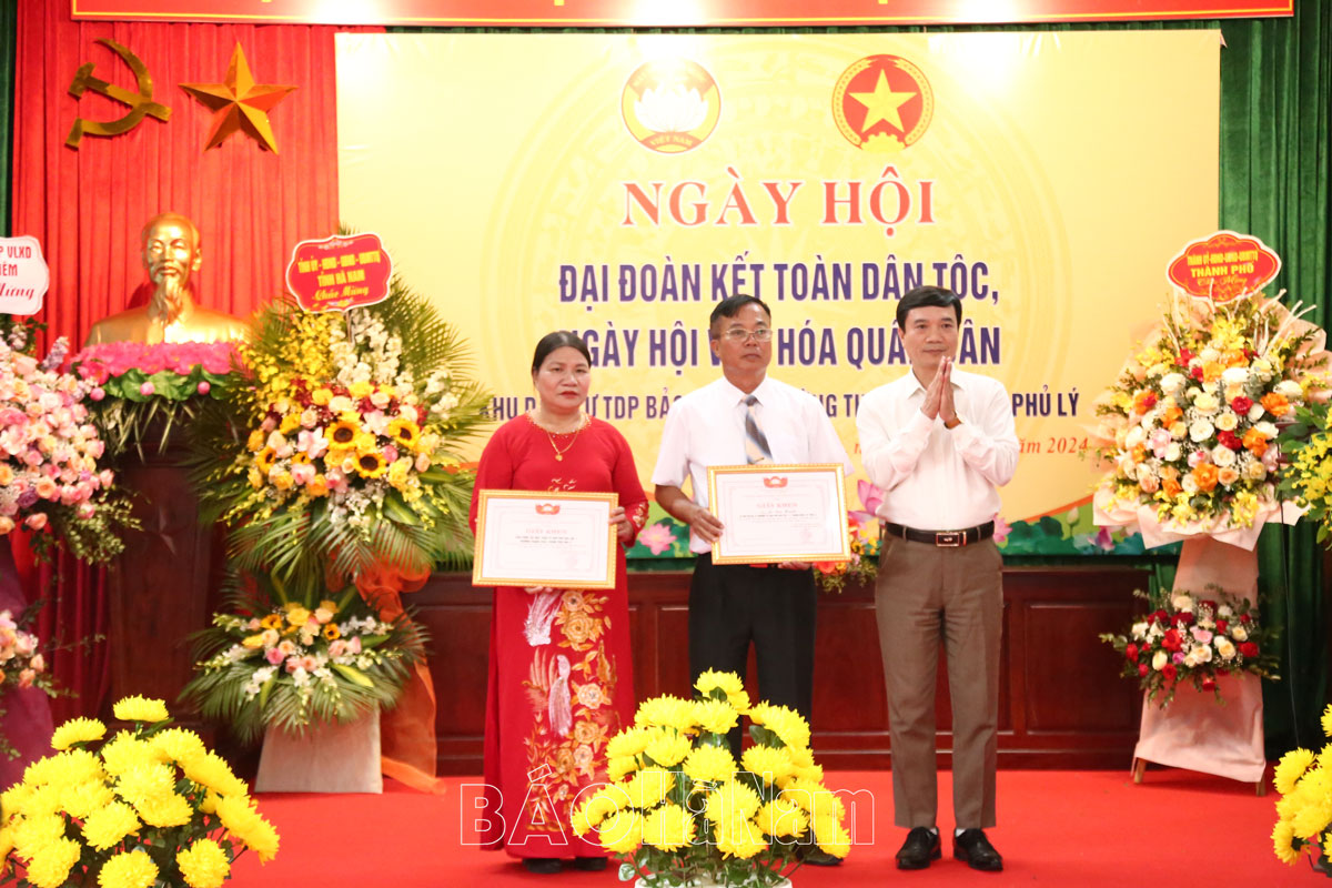 Lãnh đạo Uỷ ban MTTQ thành phố trao giấy khen cho tập thể và cá nhân có thành tích xuất sắc trong thực hiện cuộc vận động.Các hộ nghèo, hộ có hoàn cảnh đặc biệt khó khăn trên địa bàn tổ dân phố được động viên, tặng quà trong ngày hội.
