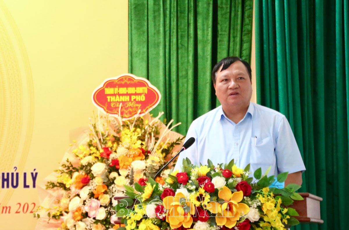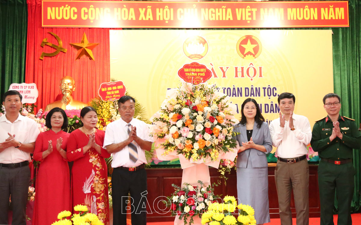 Lãnh đạo Thành ủy, HĐND, UBND, Ủy ban MTTQ thành phố Phủ Lý tặng hoa chúc mừng cán bộ, nhân dân TDP Bảo Lộc1.