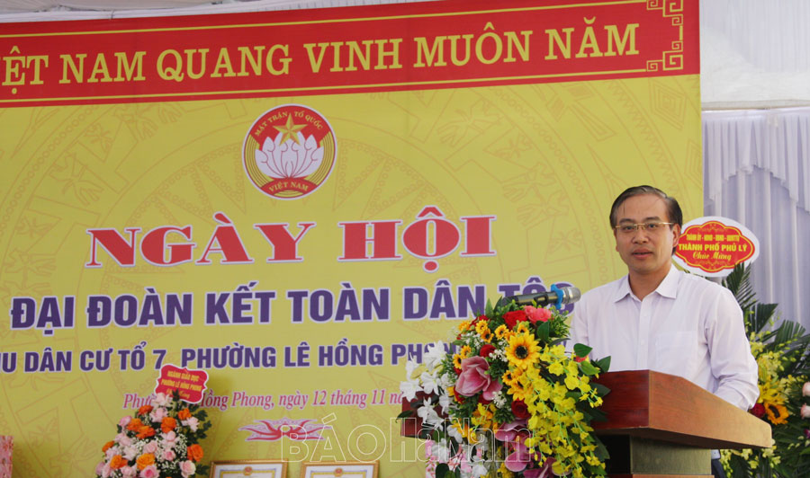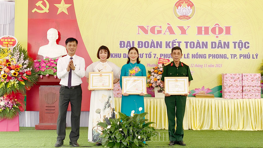 Hướng tới kỷ niệm 93 năm Ngày truyền thống Mặt trận dân tộc thống nhất Việt Nam (18/11/1930 - 18/11/2023), sáng 12/11 đồng chí Đặng Thanh Sơn, Uỷ viên BTV Tỉnh ủy , Phó Chủ tịch Thường trực HĐND tỉnh đã tới dự Ngày hội Đại đoàn kết toàn dân tộc tại Tổ dân phố (TDP) số 7, phường Lê Hồng Phong, thành phố Phủ Lý. Cùng dự có đại diện MTTQ và một số sở, ban, ngành của tỉnh; đại diện cấp ủy, chính quyền cùng đông đảo người dân địa phương.