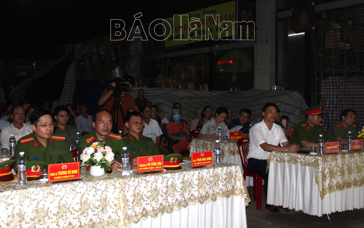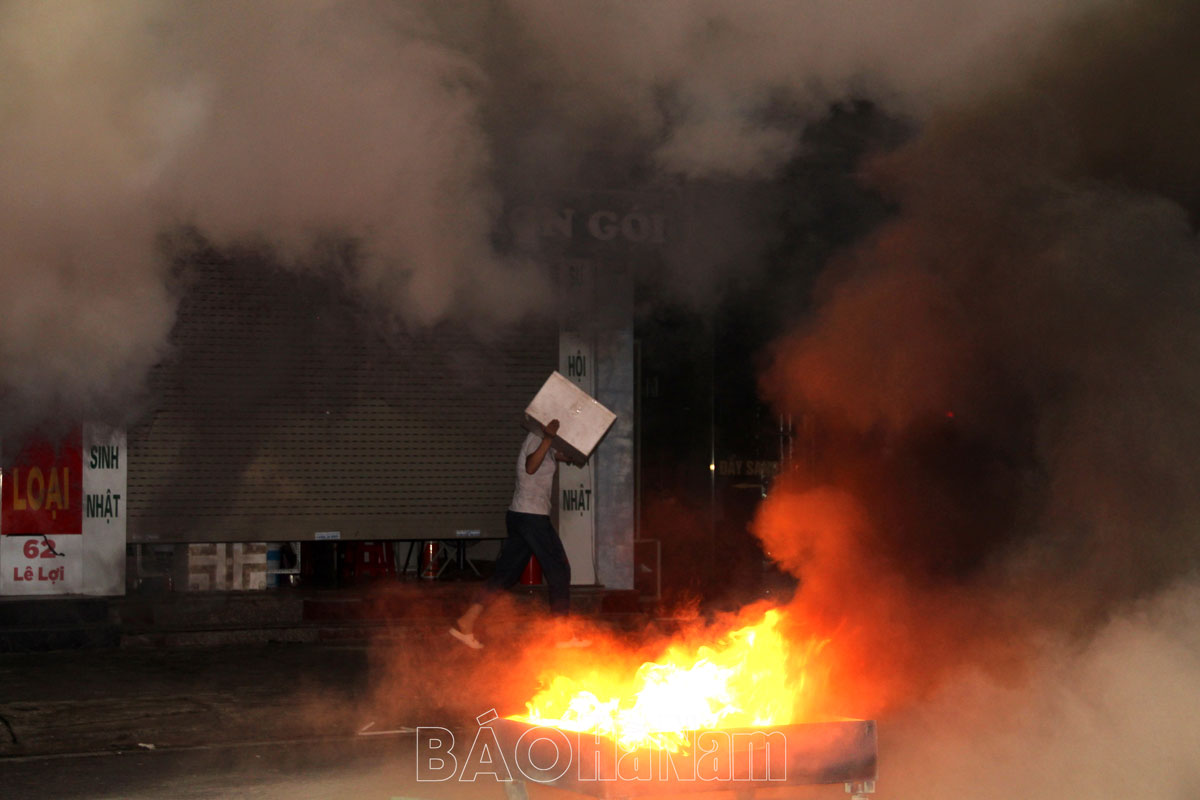 Cũng trong tối 10/9/2023, Công an các đơn vị, địa phương trên địa bàn toàn tỉnh Hà Nam đã phối hợp UBND các cấp đồng loạt tổ chức thực tập phương án chữa cháy và cứu nạn, cứu hộ tại các Tổ liên gia an toàn PCCC. Đồng thời trao tặng 1.000 bình chữa cháy cho các hộ gia đình có hoàn cảnh khó khăn trên địa bàn.