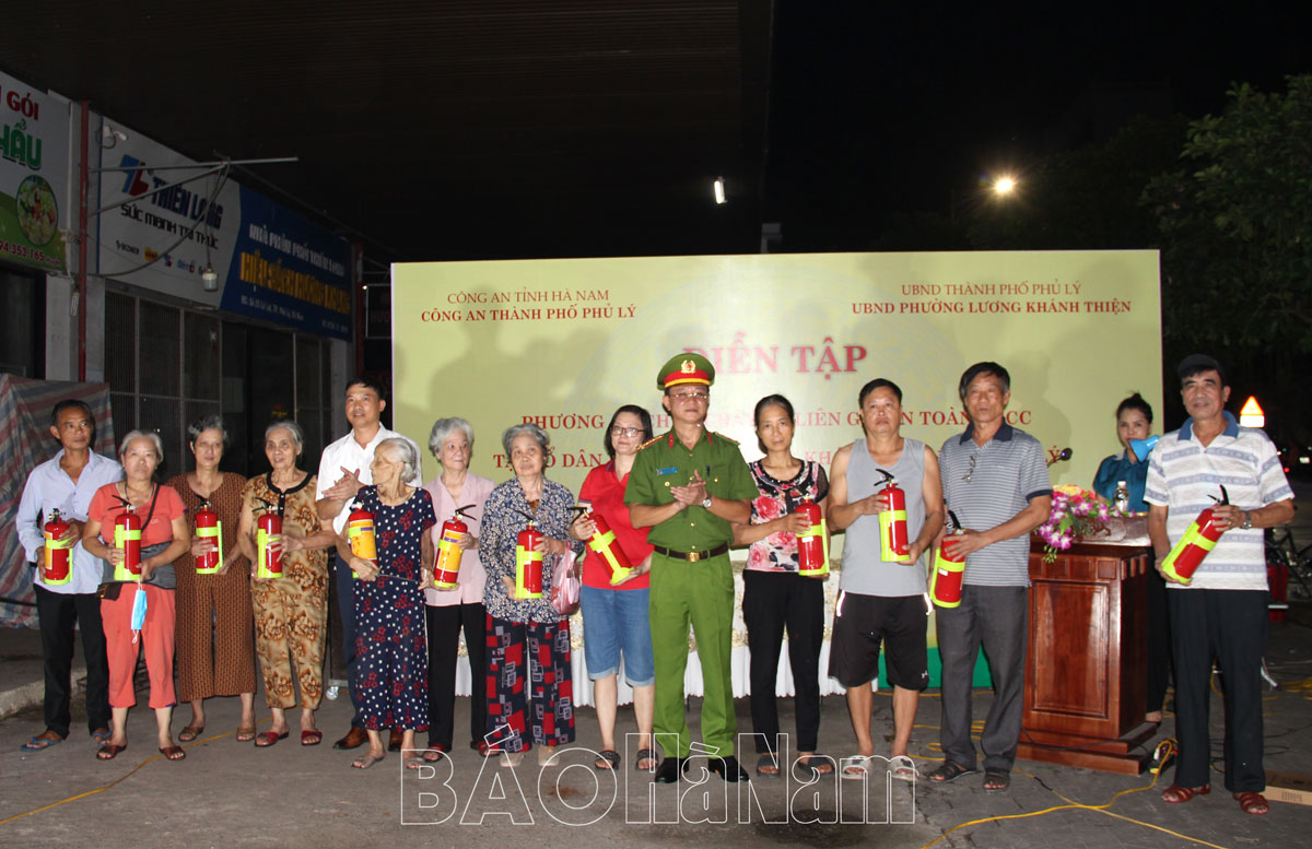 Tối 10/9, UBND phường Lương Khánh Thiện, TP. Phủ Lý tổ chức thực tập phương án chữa cháy và cứu nạn, cứu hộ (CNCH) Tổ liên gia an toàn phòng cháy, chữa cháy (PCCC) tại Tổ dân phố số 2, phường Lương Khánh Thiện.