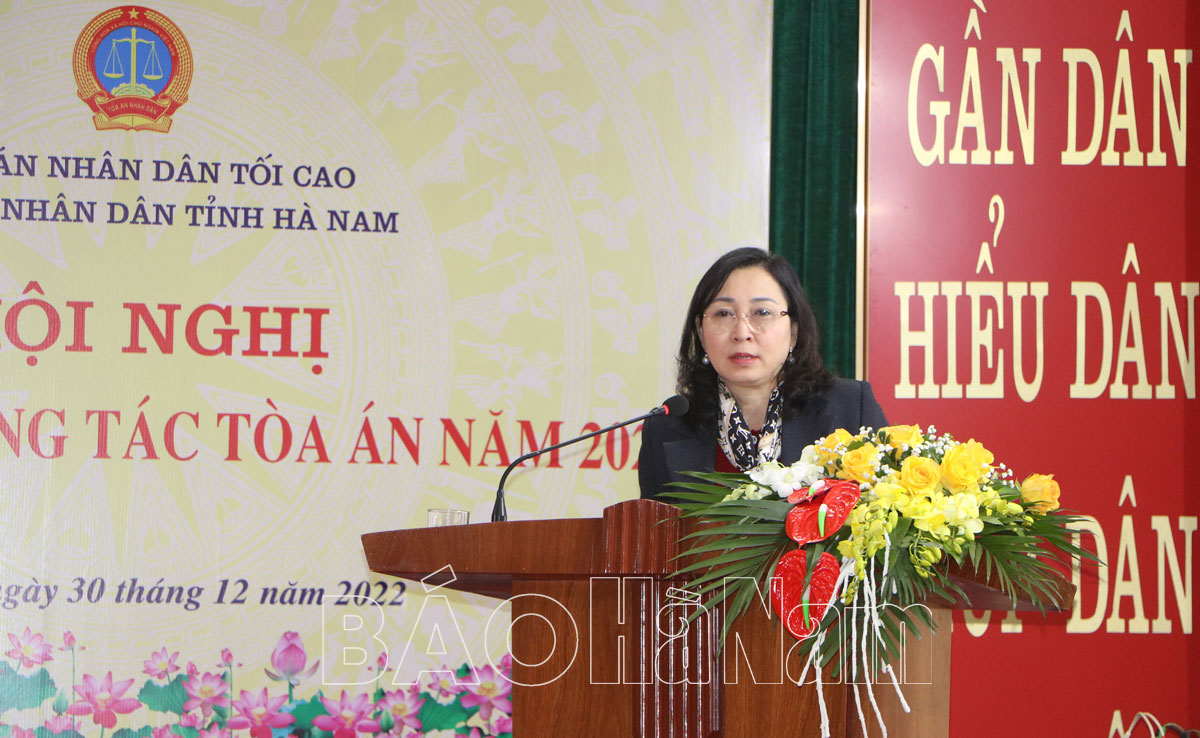 Năm 2022, Toà án hai cấp tỉnh Hà Nam tích cực thực hiện tốt các chỉ thị, nghị quyết của Đảng, pháp luật của Nhà nước; phương hướng, nhiệm vụ của Tòa án nhân dân tối cao, của tỉnh đề ra; triển khai thực hiện quyền tư pháp theo quy định của Hiến pháp bảo đảm các hoạt động tố tụng của Cơ quan điều tra, truy tố đều được kiểm tra, chứng minh công khai tại phiên tòa góp phần đưa ra quyết định, bản án đúng pháp luật.