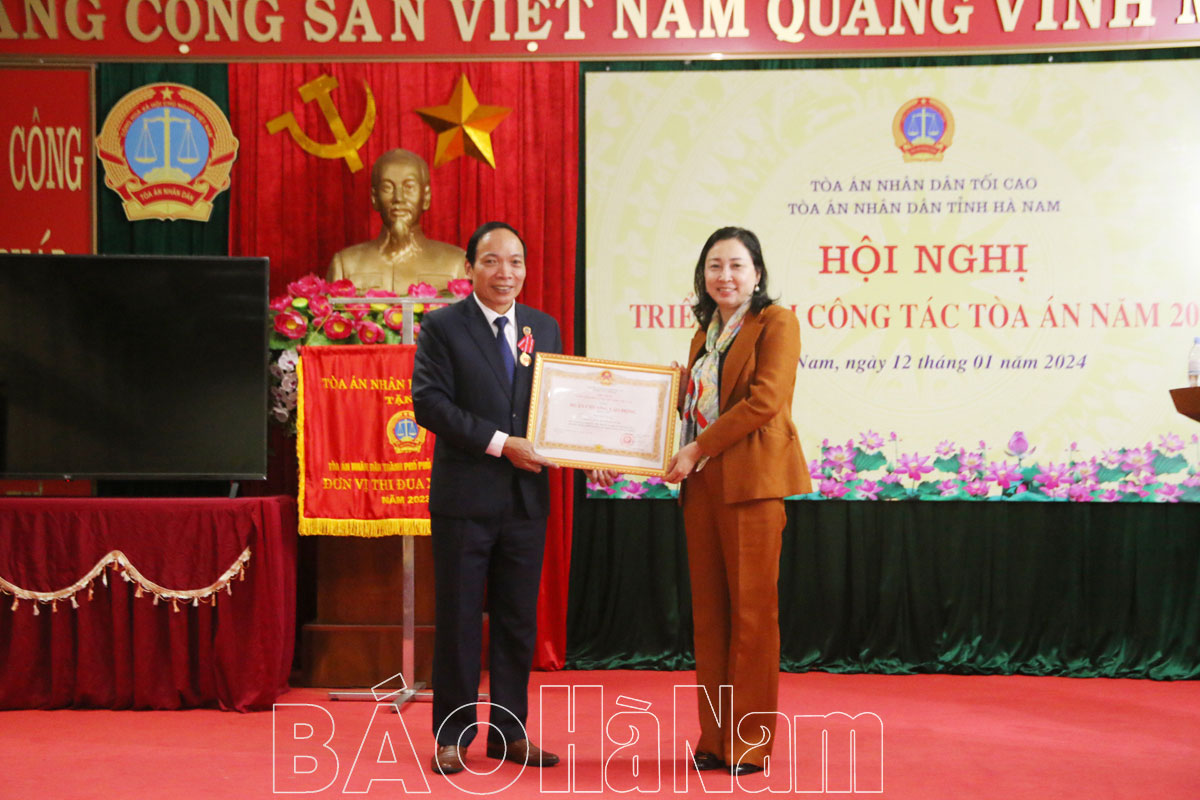 Năm 2024, TAND 2 cấp tỉnh Hà Nam đề ra 7 nhiệm vụ trọng tâm cần tập trung thực hiện. Theo đó: Tiếp tục thực hiện tốt các bộ luật, luật, pháp lệnh, nghị quyết được Quốc hội, Ủy ban Thường vụ Quốc hội thông qua có liên quan đến hoạt động của tòa án, nghị quyết của BCĐ CCTP Trung ương về công tác tư pháp và CCTP. Thực hiện nghiêm túc các quy định của Đảng, Nhà nước về quản lý cán bộ, đảng viên; quy định xử lý trách nhiệm người giữ chức danh tư pháp trong TAND; bộ quy tắc đạo đức, ứng xử của thẩm phán, quy tắc, ứng xử của cán bộ, công chức ngành TAND. Đẩy nhanh tiến độ và nâng cao chất lượng giải quyết, xét xử các loại vụ việc, phấn đấu đạt và vượt chỉ tiêu của Quốc hội, TAND tối cao, HĐND tỉnh đề ra.