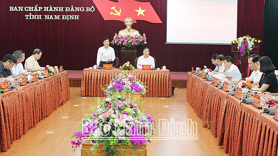 Phát biểu tại buổi Tọa đàm, đồng chí Bí thư Tỉnh ủy Phạm Gia Túc và đồng chí Phó Chủ tịch Hội đồng Lý luận Trung ương Nguyễn Quang Thuấn nêu rõ CNH-HĐH luôn được Đảng ta xác định là nhiệm vụ trung tâm xuyên suốt trong thời kỳ quá độ, chính vì vậy Tọa đàm khoa học sẽ góp phần đóng góp trực tiếp cho Bộ Chính trị về lý luận và thực tiễn chủ trương, chính sách về CNH-HĐH đất nước đến năm 2030, tầm nhìn đến năm 2045 nói chung; là cơ sở quan trọng để Chính phủ, các cấp, các ngành và các địa phương xây dựng những chính sách cụ thể, triển khai thực hiện hiệu quả. Đồng thời thông qua buổi Tọa đàm khoa học là dịp để tỉnh và các ngành, các địa phương cùng trao đổi với các nhà khoa học “Một số vấn đề lý luận – thực tiễn về chủ trương, chính sách CNH-HĐH đất nước đến năm 2030, tầm nhìn đến năm 2045” và đánh giá những kết quả, hạn chế thực hiện CNH-HĐH của tỉnh Nam Định trong thời gian qua từ đó giúp tỉnh định hình đúng hướng để có thể đạt tốc độ tăng trưởng kinh tế nhanh trong thời gian ngắn nhất, góp phần thực hiện mục tiêu xây dựng tỉnh phát triển nhanh và bền vững, đến năm 2030, Nam Định là tỉnh phát triển khá của cả nước theo tinh thần Nghị quyết Đại hội Đảng bộ tỉnh lần thứ XX