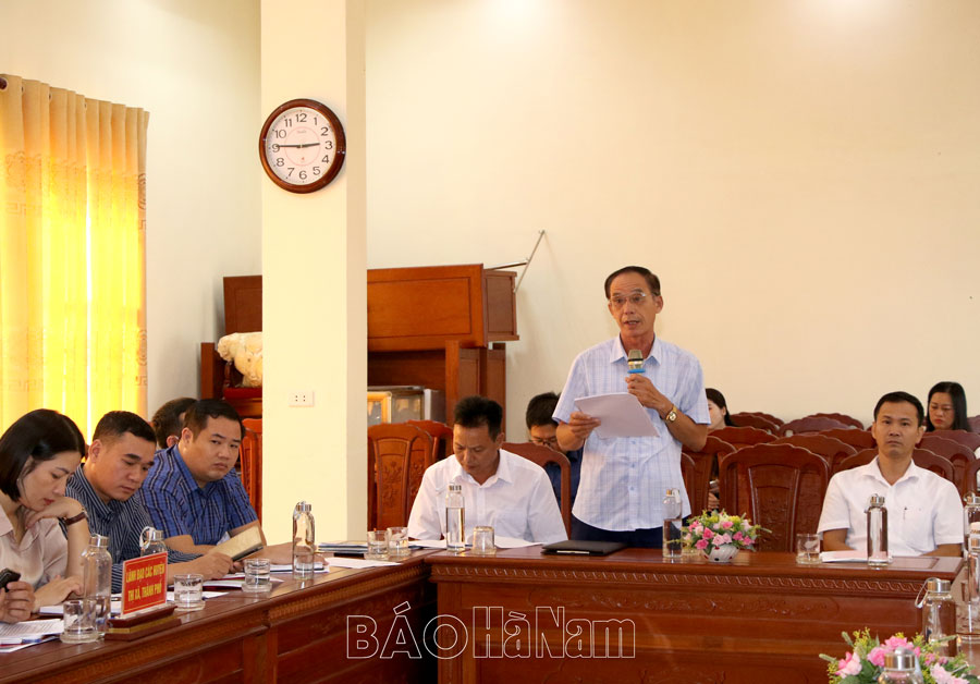 Ông Ngô Văn Lê, Chủ tịch Uỷ ban MTTQ xã Xuân Khê, huyện Lý Nhân phát biểu tại tọa đàm.