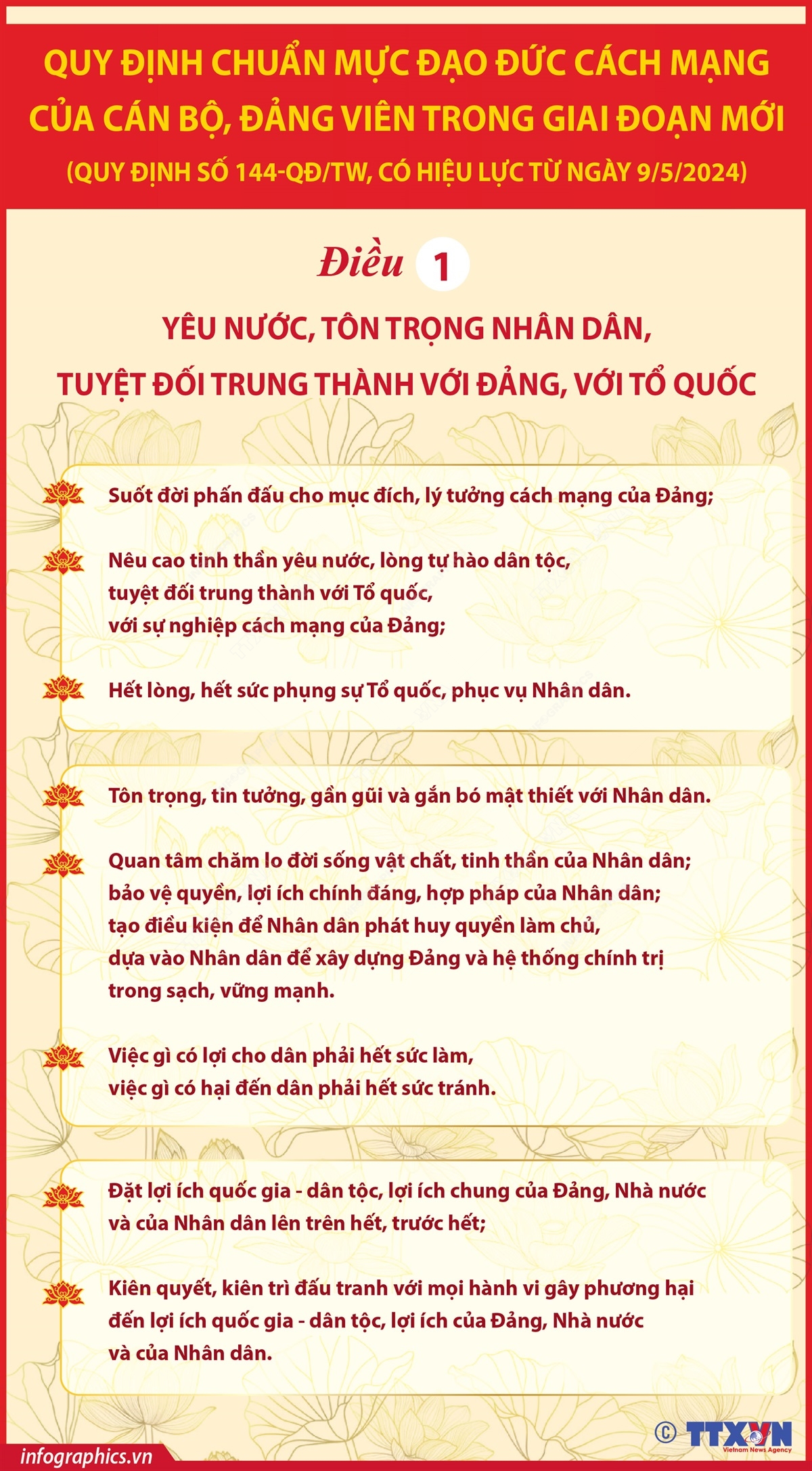 Điều 1. Yêu nước, tôn trọng Nhân dân, tuyệt đối trung thành với Đảng, với Tổ quốc