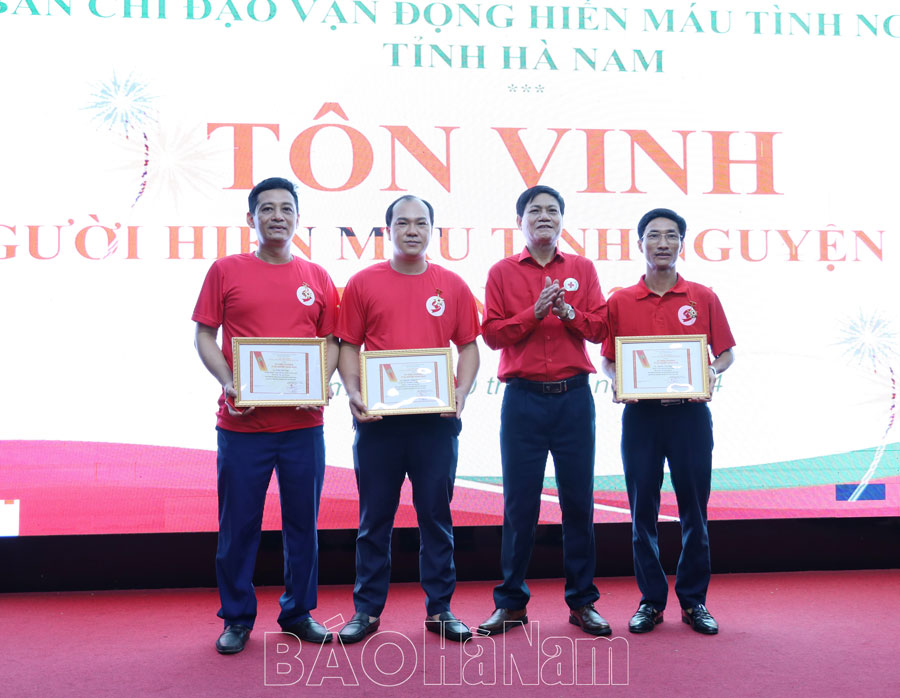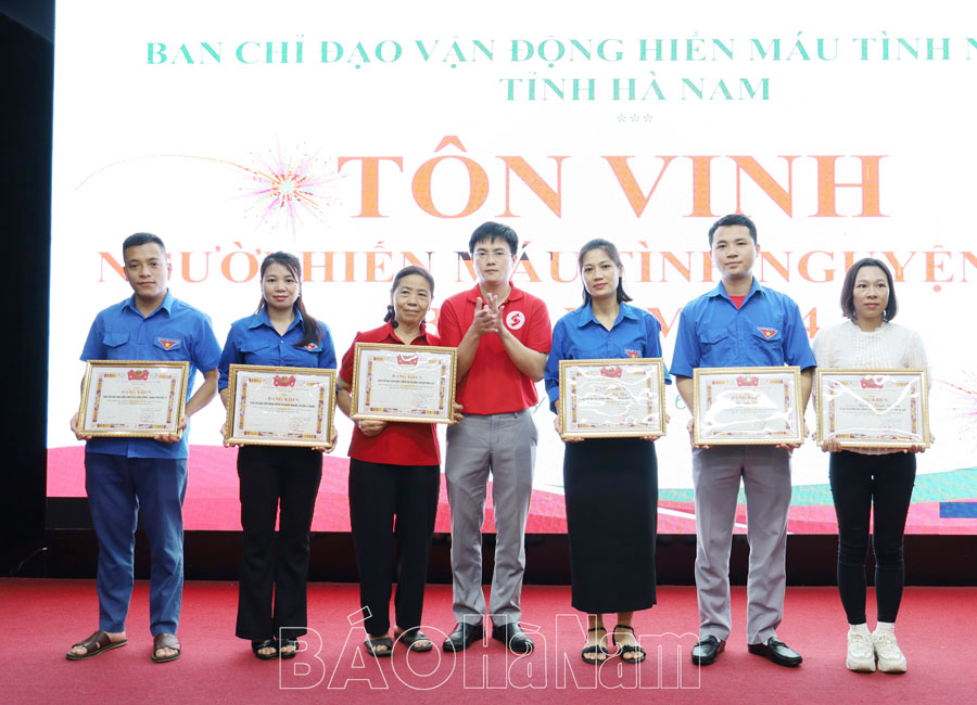 Tại chương trình, BCĐ vận động HMTN tỉnh đã tôn vinh 92 tập thể, cá nhân, gia đình tiêu biểu trong phong trào HMTN năm 2023 và 6 tháng đầu năm 2024. Trong đó, 3 cá nhân được tặng kỷ niệm chương "Vì sự nghiệp nhân đạo", 10 tập thể, 10 cá nhân được tặng Bằng khen của Trung ương Hội Chữ thập đỏ Việt Nam; 9 tập thể, 16 cá nhân được tặng Bằng khen của UBND tỉnh. Nhiều tập thể, cá nhân được nhận Giấy khen của Viện Huyết học - Truyền máu Trung ương, Hội Chữ thập đỏ tỉnh và Bằng khen của Tỉnh đoàn.