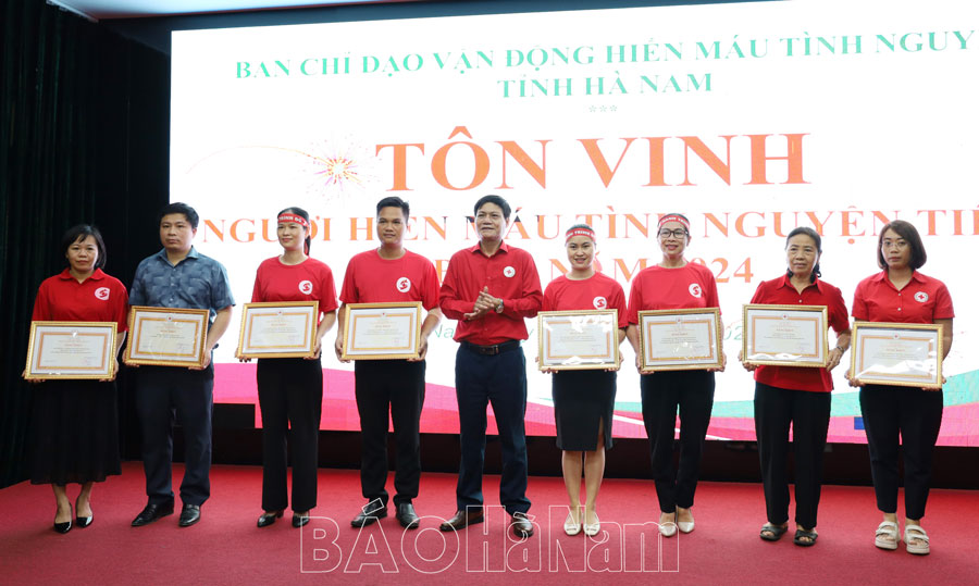 Sáng 10/6, Ban Chỉ đạo (BCĐ) vận động hiến máu tình nguyện (HMTN) tỉnh tổ chức tôn vinh các tập thể, cá nhân, gia đình hiến máu tiêu biểu năm 2024; phát động “Hành trình đỏ - Hà Nam kết nối dòng máu Việt” và ngày hội hiến máu “Hà Nam - Giọt hồng gắn kết yêu thương”.