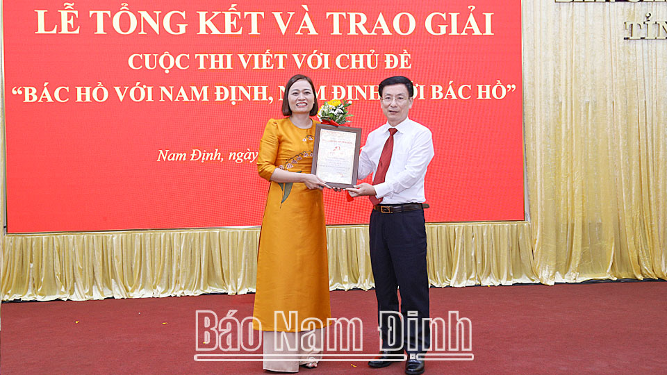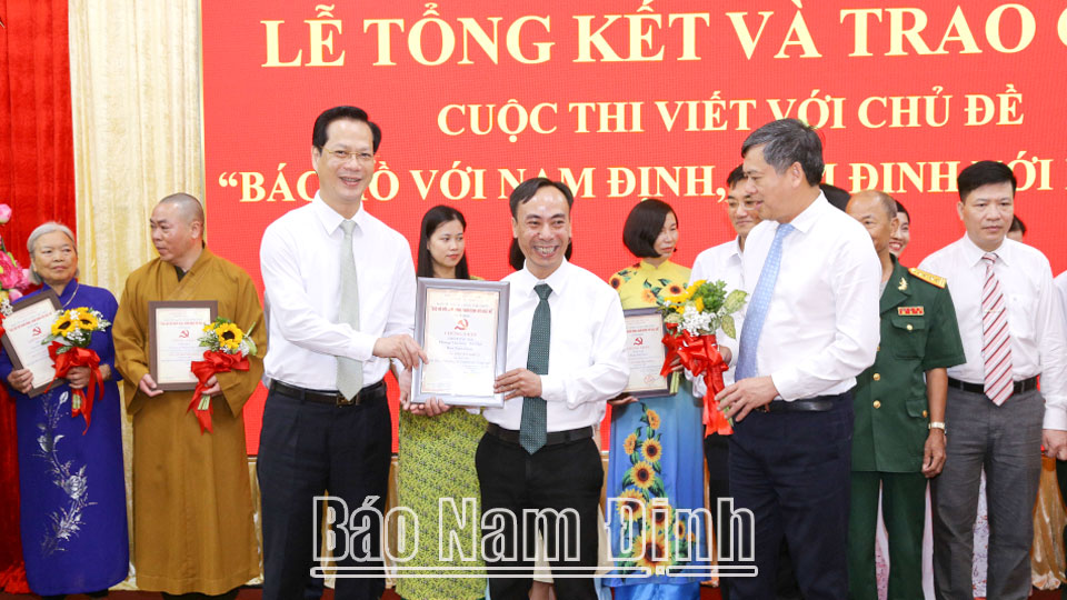 Tại buổi lễ, Ban Tổ chức Cuộc thi đã trao 40 giải thưởng cho các bài viết tham gia Cuộc thi, trong đó có 1 giải Đặc biệt, 1 giải Nhất, 3 giải Nhì, 10 giải Ba và 25 giải Khuyến khích. Theo đó, nhóm tác giả Lực lượng vũ trang thành phố Nam Định được nhận giải Đặc biệt. Tác giả Nguyễn Thị Kim Dung, Giáo viên Trường Tiểu học Yên Trị (Ý Yên) được nhận giải Nhất. Các nhóm tác giả: Phòng Khoa giáo - Lịch sử Đảng và Phòng Lý luận chính trị (Ban Tuyên giáo Tỉnh ủy), Tập thể cơ quan Thành Đoàn Nam Định và Đoàn Thanh niên (Công an tỉnh) được nhận giải Nhì.
