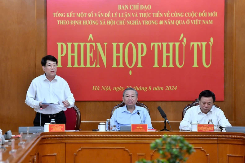 Kết luận phiên họp, đồng chí Tổng Bí thư, Chủ tịch nước Tô Lâm đánh giá cao nỗ lực cố gắng của các đồng chí thành viên Ban Chỉ đạo. Đồng thời đánh giá cao nội dung đã được tổng kết, hệ thống với 5 kết quả nổi bật: Đã hệ thống làm rõ sự phát triển lý luận của Đảng ta về đổi mới theo định hướng xã hội chủ nghĩa, xây dựng và bảo vệ Tổ quốc xã hội chủ nghĩa qua 40 năm đổi mới; đánh giá, làm rõ thành tựu, hạn chế trong thực tiễn xây dựng chủ nghĩa xã hội ở Việt Nam trên 4 nhóm vấn đề lớn (xây dựng, phát triển kinh tế thị trường định hướng xã hội chủ nghĩa;