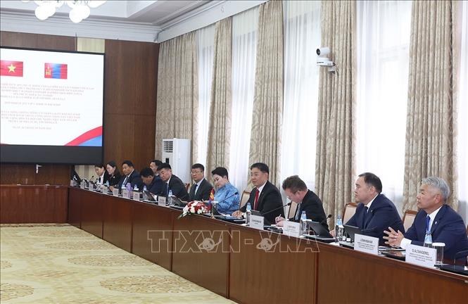 Hai bên nhất trí thúc đẩy hợp tác kinh tế phát triển thực chất, hiệu quả và phù hợp với nhu cầu của mỗi bên; duy trì các cơ chế hợp tác kinh tế song phương, trong đó có cơ chế Ủy ban liên Chính phủ về hợp tác kinh tế, thương mại, khoa học và kỹ thuật; tăng cường các biện pháp xúc tiến thương mại, kết nối doanh nghiệp hai nước, qua đó góp phần tăng kim ngạch thương mại song phương Việt Nam - Mông Cổ; hỗ trợ thông tin, cơ chế, chính sách thúc đẩy xuất nhập khẩu hàng hóa, dịch vụ mỗi nước tiếp cận thuận lợi thị trường của nhau, nhất là các mặt hàng thế mạnh của mỗi nước; nhất trí hỗ trợ chính sách, khuyến khích doanh nghiệp hai bên đầu tư vào các lĩnh vực có thế mạnh, các khu kinh tế, công nghiệp.