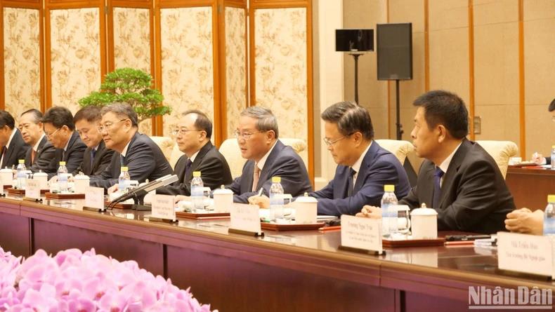 Thủ tướng Lý Cường đề nghị hai bên tiếp tục tăng cường quan hệ láng giềng, hữu nghị, đẩy mạnh các hoạt động giao lưu nhân dân và thế hệ trẻ hai nước; triển khai các dự án dân sinh và hợp tác trong lĩnh vực giáo dục dạy nghề, phát huy tốt vai trò của Cung Hữu nghị Việt-Trung.